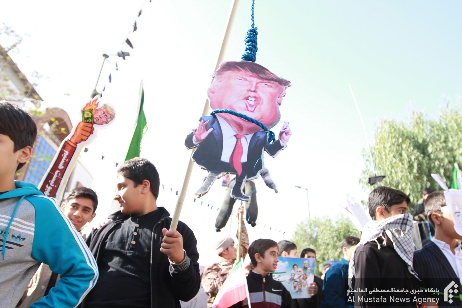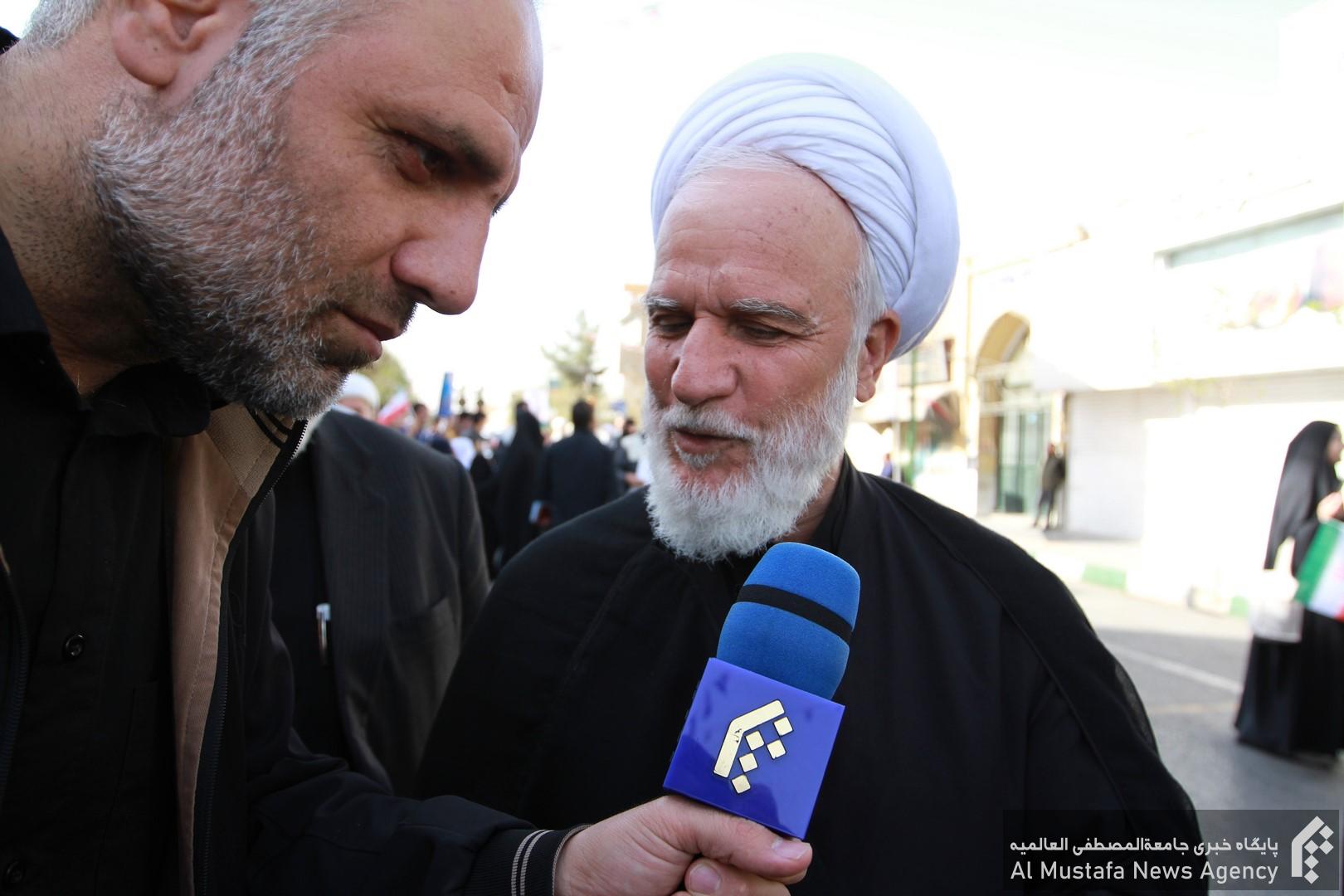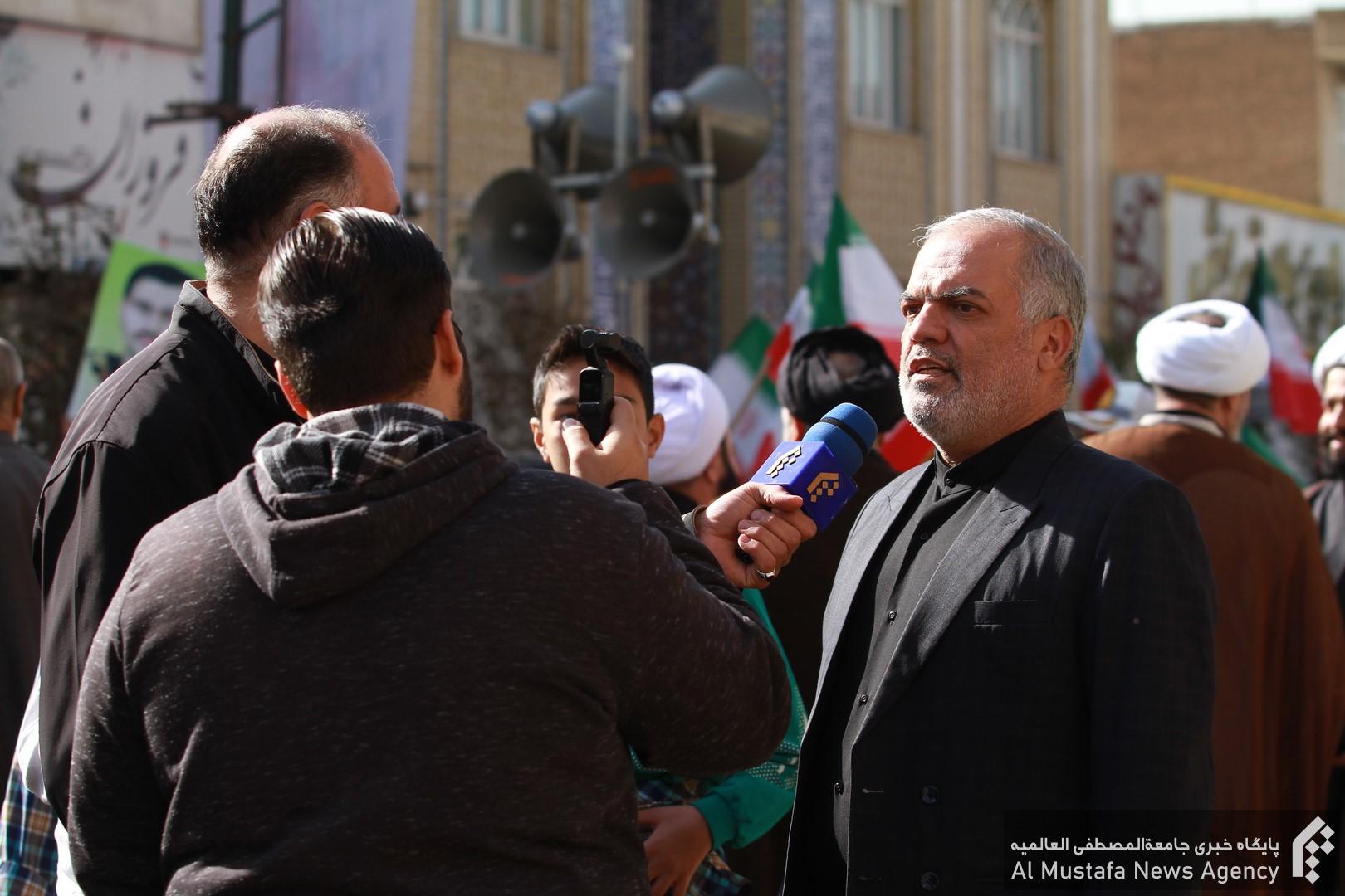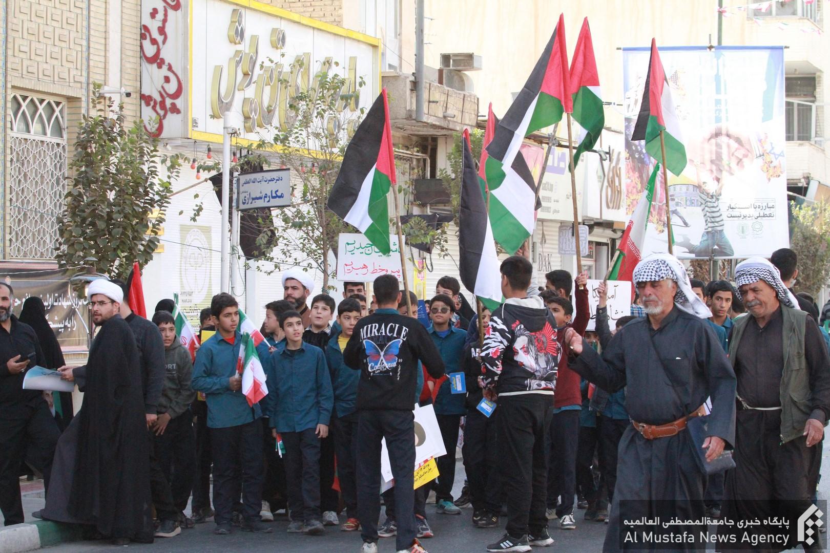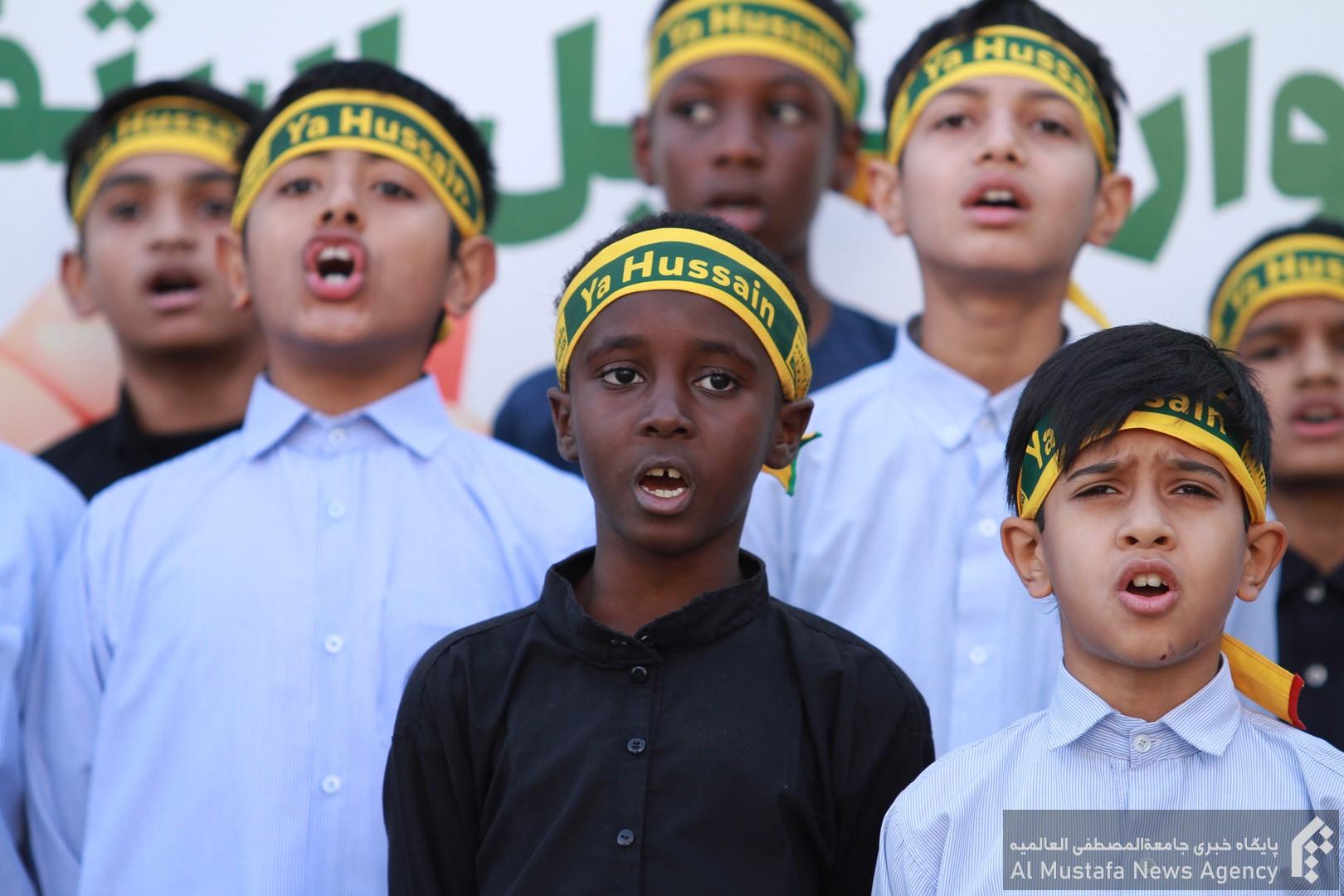 اجرای سرود توسط فرزندان طلاب المصطفی به زبان های فارسی، عربی و انگلیسی از جلوههای ماندگار در این راهپیمایی دشمن شکن بود.
