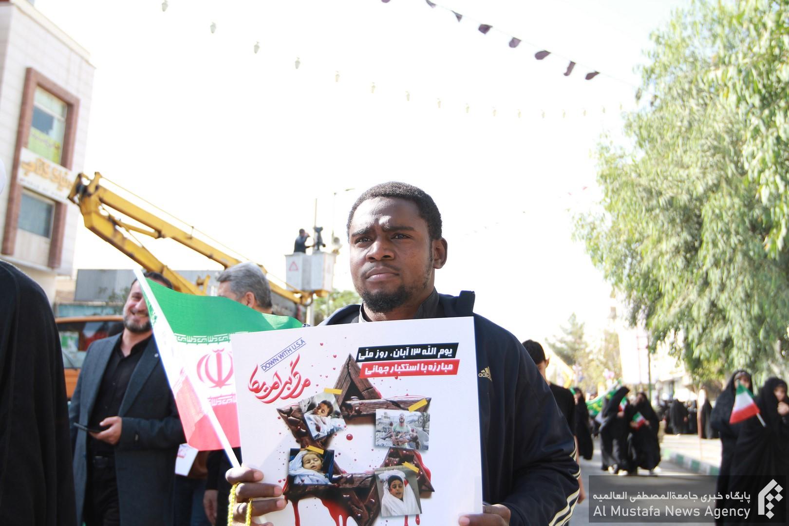 طلاب بینالملل جامعةالمصطفی به همراه خانوادههای خود در راهپیمایی روز مبارزه با استکبار جهانی حضور یافتند.