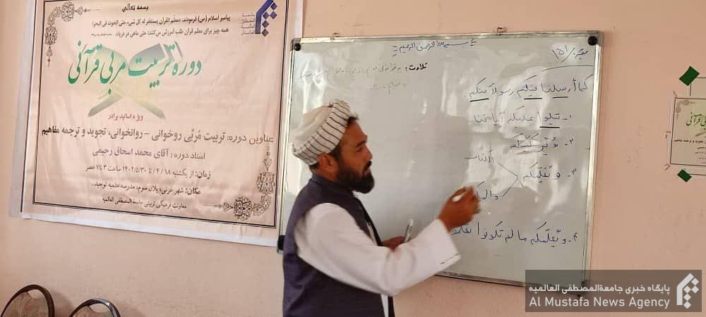 دوره تربیت مربی قرآنی با تدریس استاد محمد اسحاق رحیمی برای اساتید قرآنی خواهر مدارس علمیه ولایت عزنی برای ۴۰ جلسه درسی تنظیم گردید.
