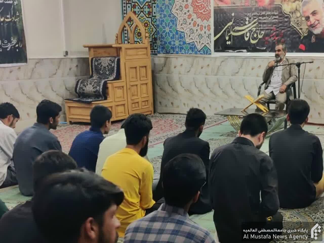 در ادامه طلاب با این روایتگر دفاع مقدس به گفتگو نشستند و در فضایی صمیمانه ازخاطرات و تجربیات وی بهره بردند.