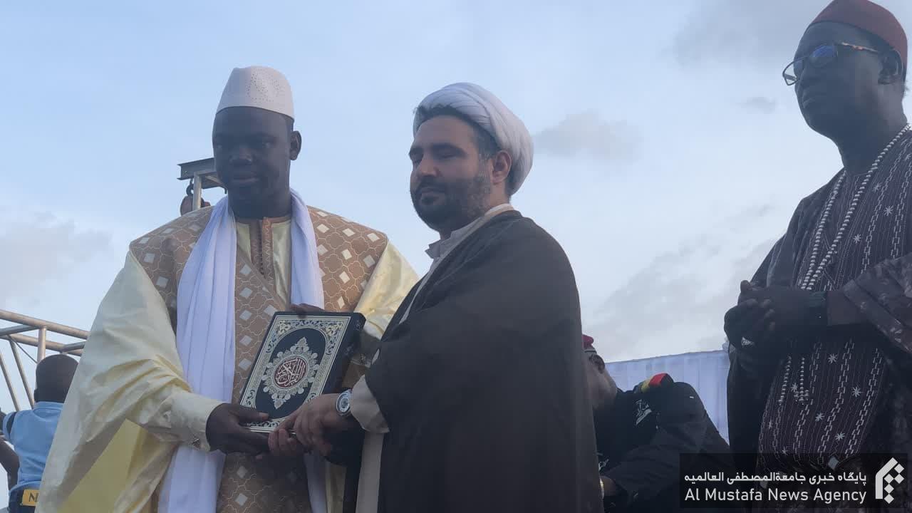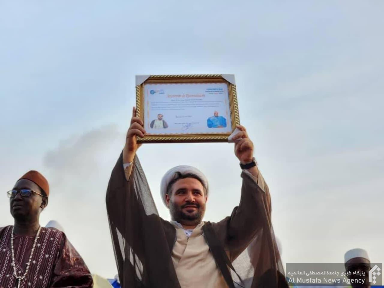در مراسم گرامیداشت ولادت پیامبر اعظم و امام صادق علیهما السلام، ضمن تقدیر از خدمات قرآنی جامعه المصطفی العالمیة در کشور مالی با اهدای لوح و قرآن کریم از سوی علمای کشور مالی از خدمات ارزنده حجت الاسلام والمسلمین فتحی نماینده جامعةالمصطفی تقدیر شد.