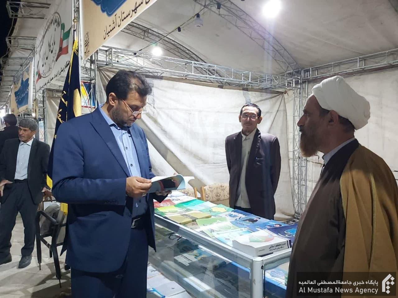 غرفه نمایندگی جامعةالمصطفی در مکان نمایشگاه در مجموعه دانشگاه آزاد اسلامی واحد آشتیان، به همت تمامی معاونت ها و تشکلهای فرهنگی و علمی فعال در این نمایندگی و مدرسه عالی خواهران خدیجه کبری این شهرستان تجهیز و دایر گردید.