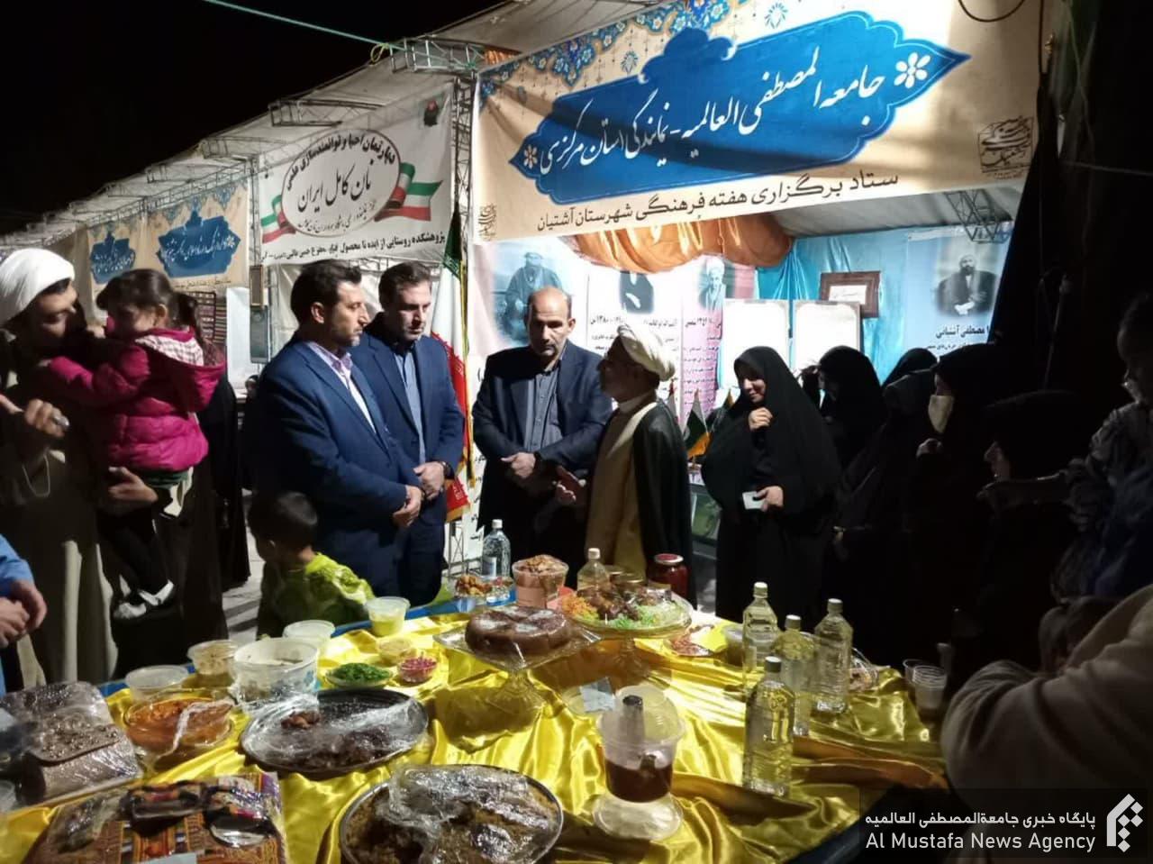 با حضور پرنگ و تاثیر گذار نمایندگی جامعه المصطفی در استان مرکزی واحد آشتیان، هفته فرهنگی آشتیان با برنامههای متنوع فرهنگی و هنری با هدف معرفی مفاخر و فرهیختگان، آداب و رسوم، آیینها و صنایع دستی این منطقه، به نسل جوان و مشخص کردن الگوهای اخلاقی و رفتاری برای جوانان و همچنین به منظور نمایش ظرفیتهای اقتصادی و فرهنگی این شهرستان از ۱۵ مهرماه آغاز و تا ۲۱ مهرماه برگزار شد.