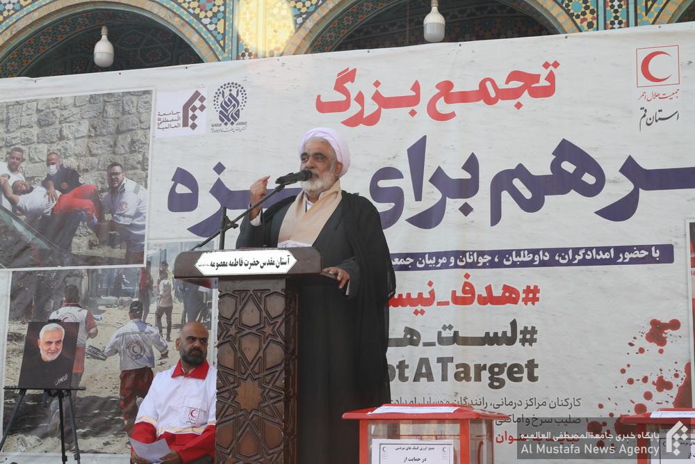 تجمع «مرهم برای غزه» ظهر امروز با حضور امدادگران، داوطلبان، کادر درمان و جامعه سلامت استان قم در صحن امام رضا(ع) حرم مطهر حضرت معصومه(س) برگزار شد.