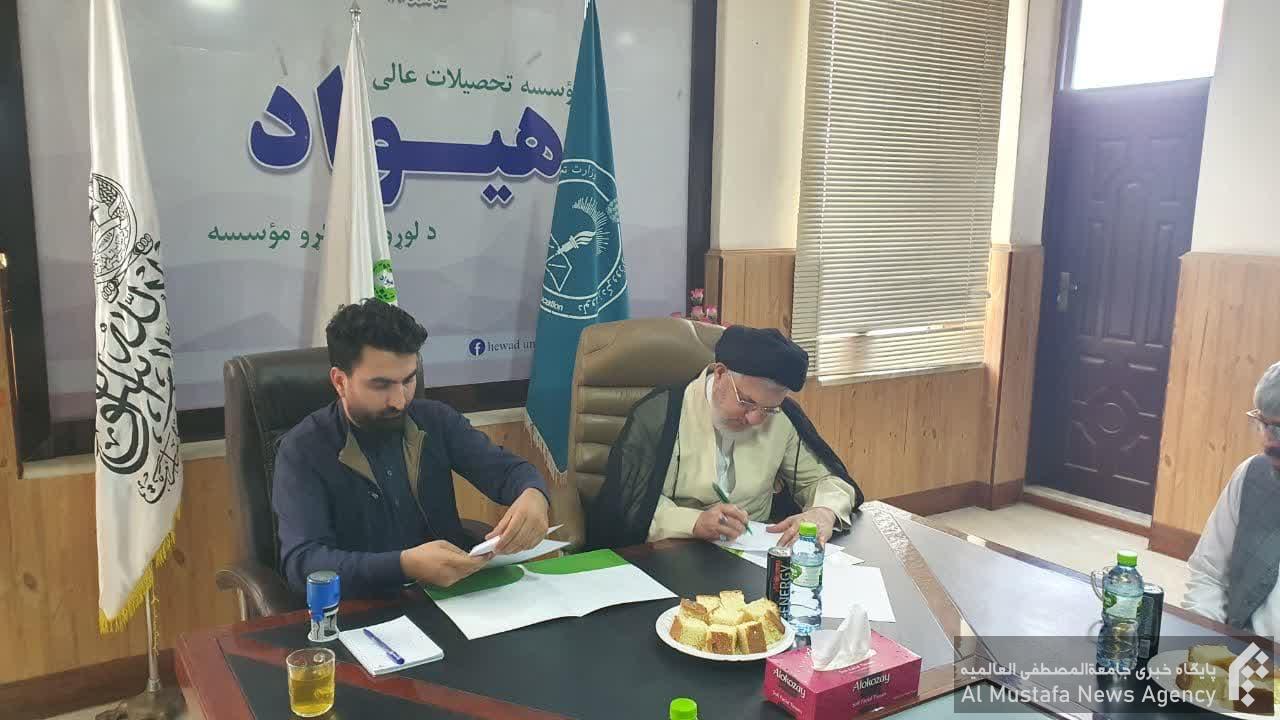 عطا محمد هلواک رئیس شبکه تعلیمی و تحصیلی هیواد و ذبیحالله فضلی رئیس دانشگاه هیواد ضمن خیرمقدم به رئیس نمایندگی جامعةالمصطفی در افغانستان و هیئت همراه از حضور حجتالاسلاموالمسلمین ثابت در دانشگاه هیواد اظهار خرسندی کردند.