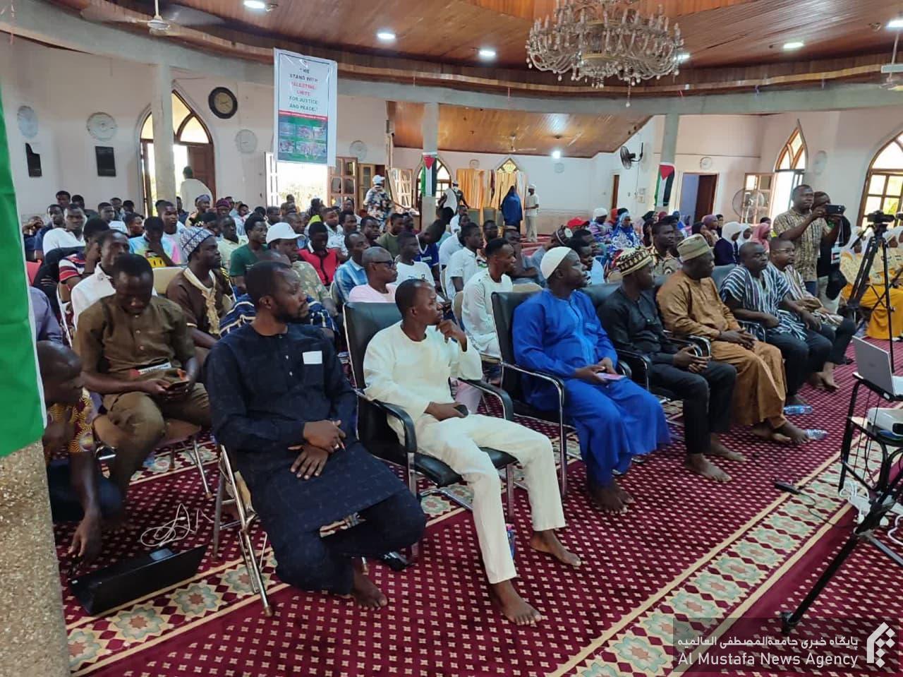 در همایش دفاع از مردم غزه در محل سالن کنفرانس دانشگاه اسلامی غنا و با حضور دانشجویان و اساتید نمایندگی جامعةالمصطفی در این کشور برگزار شد و سفیر فلسطین و ایران و همچنین دکتر ناصر از اساتید مطرح دانشگاه در آکرا در تشریح حوادث امروز در فلسطین سخنرانی کردند.