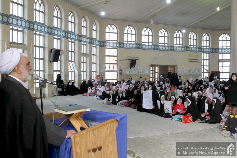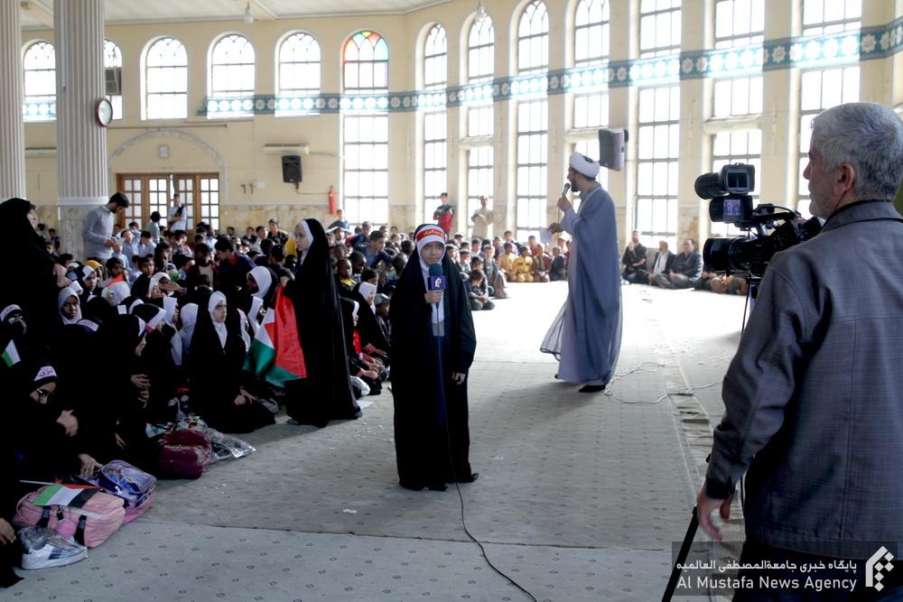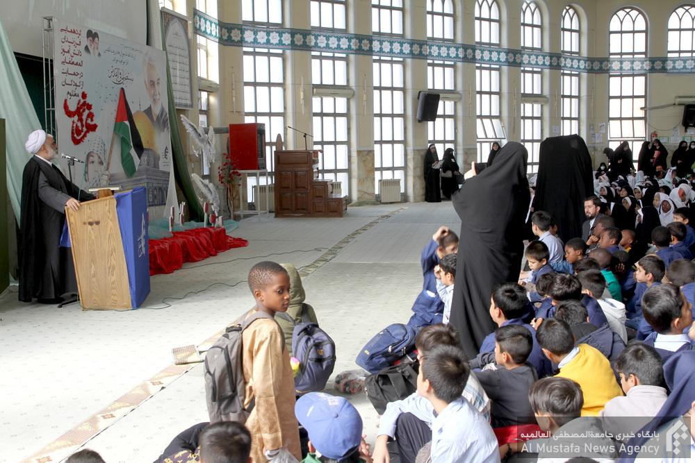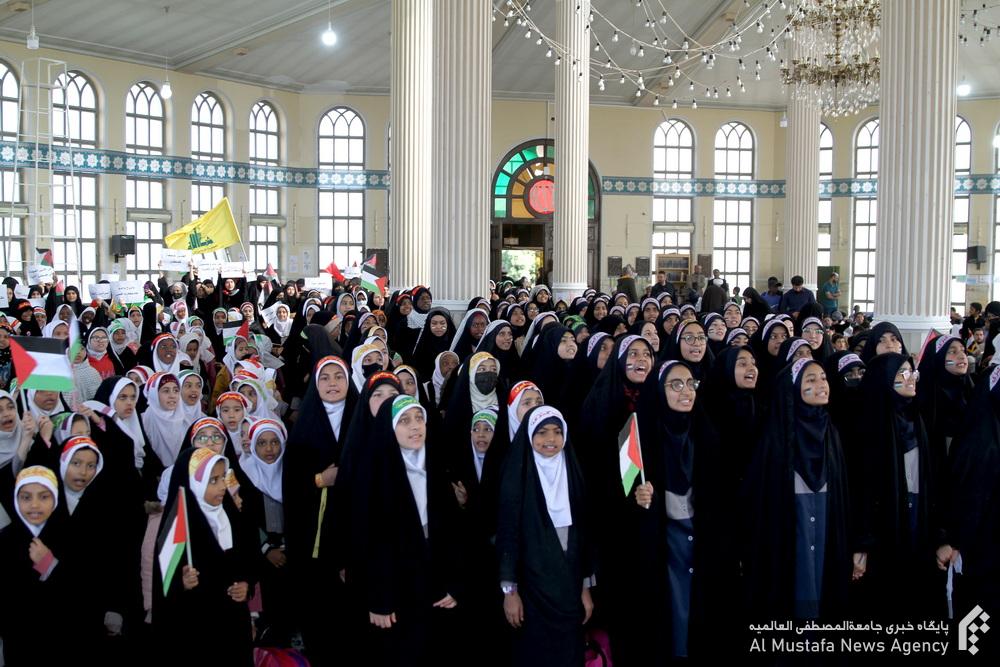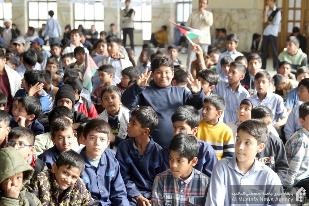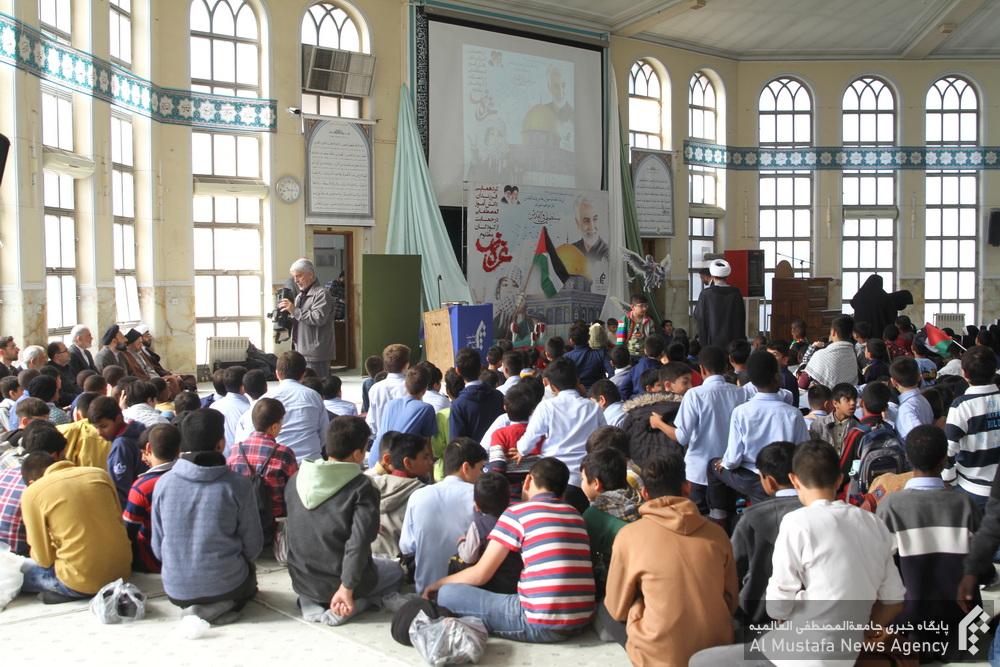 فرزندان جامعةالمصطفی از بیش از ۱۰۰ کشور جهان که در مدارس جامعةالمصطفی مشغول تحصیل هستند، گرد هم جمع شدند تا انزجار خود را از رژِیم صهیونیستی جنایتکار و استکبار جهانی اعلام و از مردم مظلوم غزه و فلسطین حمایت نمایند.