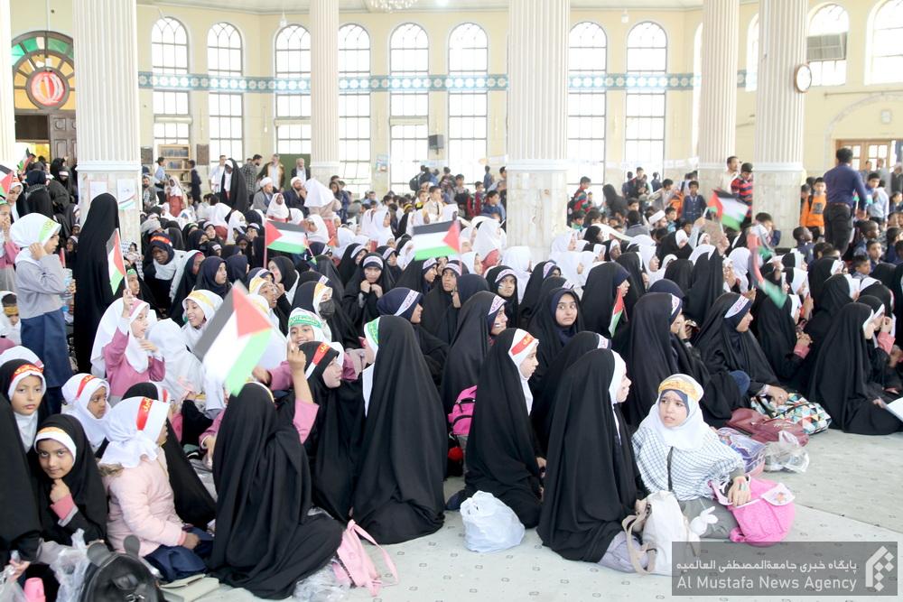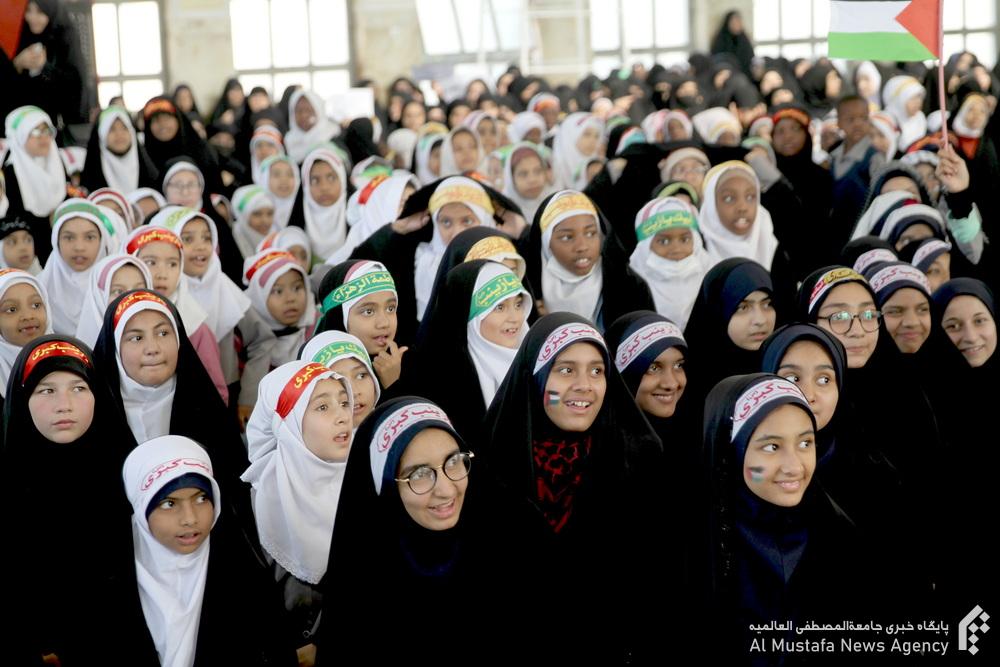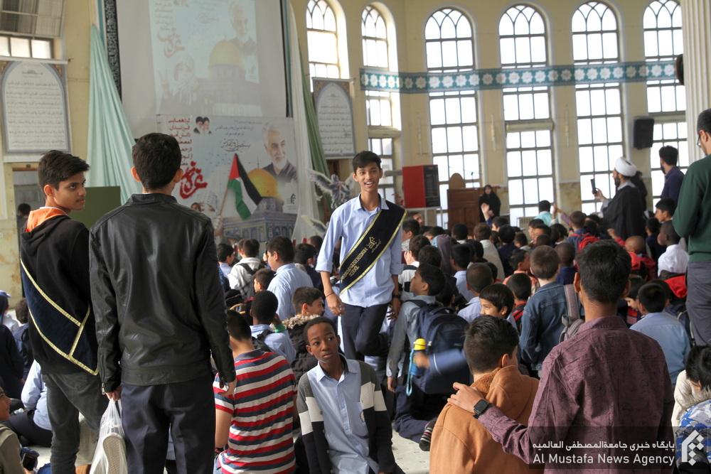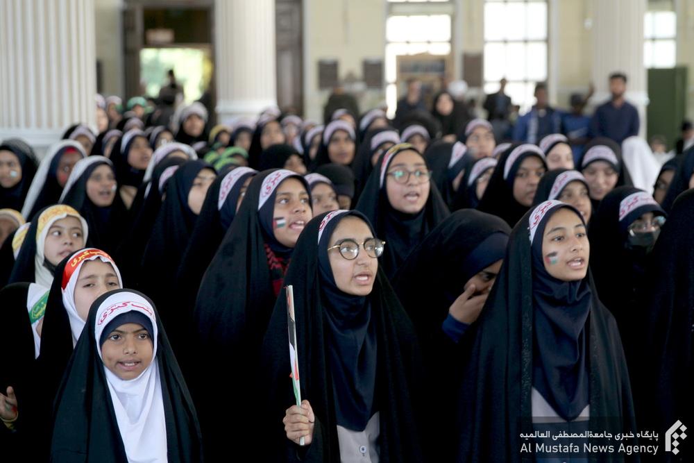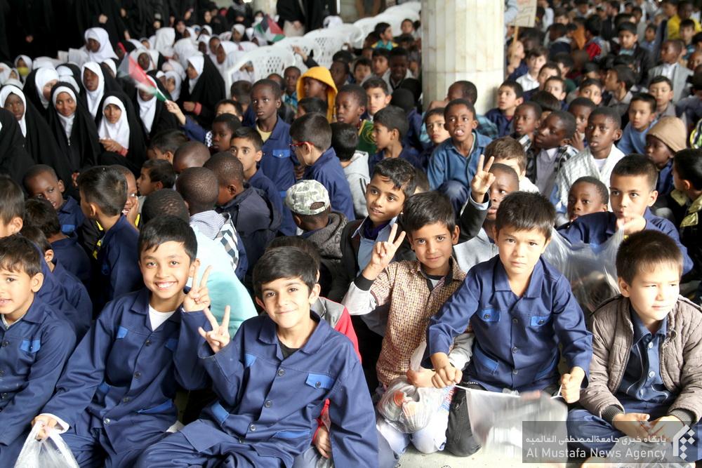 حدود ۲ هزار نفر از فرزندان امت اسلامی از ۱۰۰ ملیت جهان و منتخبینی از ۱۷ مدرسه تحت پوشش فرزندان المصطفی گرد هم جمع آمده شعار مرگ بر اسرائیل و مرگ بر امریکا را طنینانداز کردند.