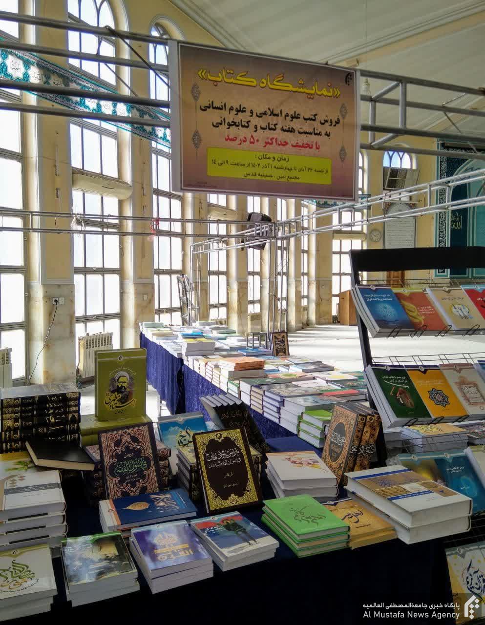 در هفته کتاب و کتابخوانی، باهدف ترویج فرهنگ کتابخوانی، نمایشگاه و فروشگاه کتاب بهصورت مشترک توسط معاونت پژوهش مجتمع آموزش عالی علومانسانی و انتشارات بینالمللی المصطفی در حسینیه قدس مجتمع امین برگزار شد و کتب با تخفیف ۵۰ درصد در اختیار متقاضیان قرار گرفت.