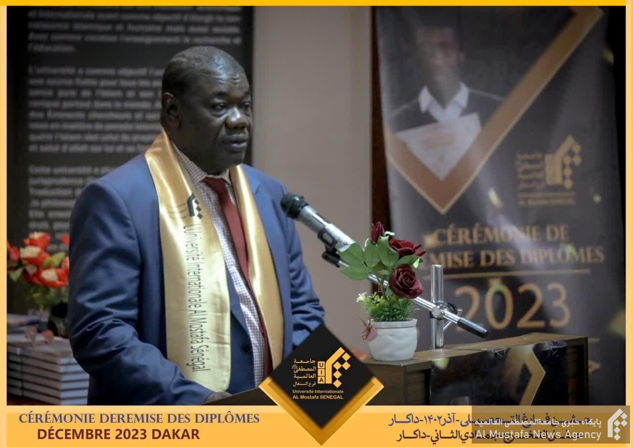 مهندس “عبدو امبوپ” وزیر مشاور رییس جمهور سنگال در امور علوم و تکنولوژی که به عنوان نماینده دولت این کشور در جشن فارغالتحصیلی نمایندگی منطقهای المصطفی در سنگال شرکت کرده بود، در سخنانی ضمن ابلاغ سلام و آرزوی موفقیت آقای “مکی سال” رییس جمهور، از تلاشهای نمایندگی جامعة المصطفی العالمية در سنگال قدردانی و سپاسگزاری نمود و خطاب به دانشآموختگان این دوره گفت: شما جوانان آیندهساز باید پس از کسب مهارت در علوم اسلامی و قرآنی، وارد عرصه تعلیم و تربیت شوید و به دیگران آموزش دهید و برای استقلال بیشتر کشور، دست به کارآفرینی بزنید.