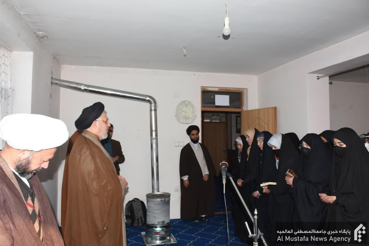 در پایان حجت الاسلام و المسلمین دکتر سید عبدالحمید ثابت ریاست نمایندگی جامعة المصطفی افغانستان در جمع قرآن آموزان موسسه الی النور حاضر گردیده و سخنرانی نمودند.