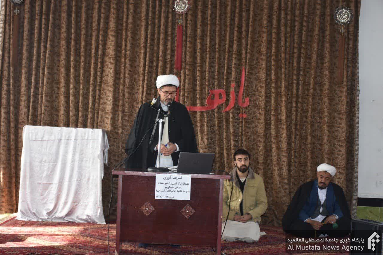 جلسه که در مدرسه خاتم المرسلین ولایت کابل از مدارس همکار نمایندگی برگزار گردید، با قرائت قرآن کریم و مداحی به مناسبت میلاد حضرت فاطمه زهرا(س) و شهادت شیهد القدس حاج قاسم سلیمانی(ره) و دیگر شهدای مقاومت آغاز شد و سپس حجت الاسلام و المسلمین سید عبدالحمید ثابت رئیس نمایندگی جامعة المصطفی در افغانستان سخنرانی نمود.