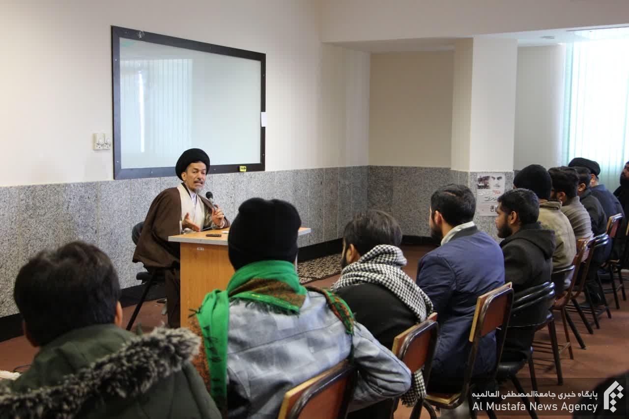 حجتالاسلاموالمسلمین علیزاده موسوی ضمن اشاره به علمای بزرگ هند و پاکستان و معرفی برخی از آثار و مکتوبات گرانقدرشان، بر ضرورت جدیت در تحصیل و کسب معارف نورانی قرآن و اهلبیت علیهمالسلام تأکید نمود.