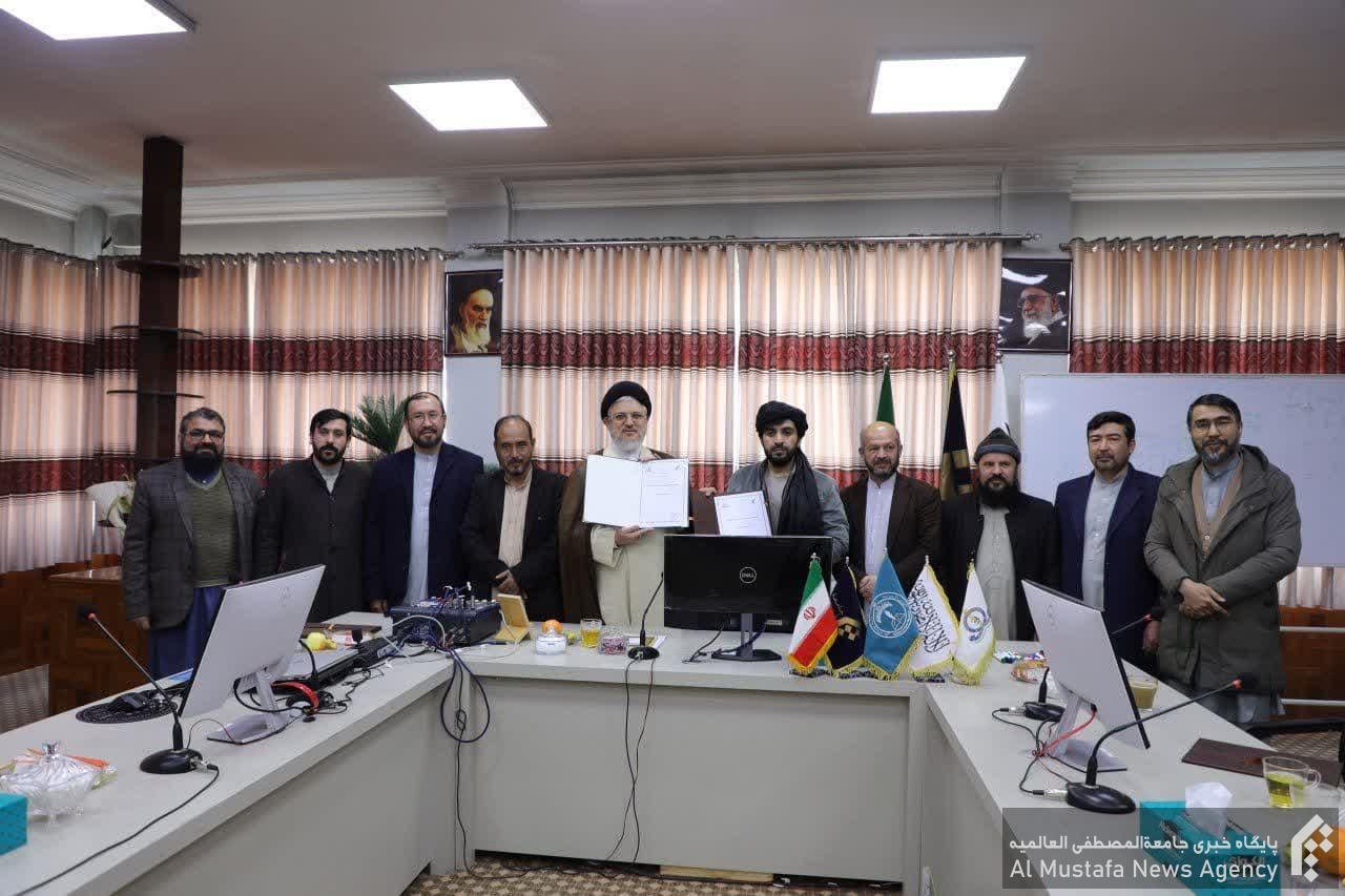 در پایان تفاهم نامه همکاری میان دو دانشگاه به وسیله حجت الاسلام و المسلمین آقای دکتر سید عبدالحمید ثابت رئیس نمایندگی جامعة المصطفی افغانستان و آقای نصیر احمد ارغندابی به امضا رسید.