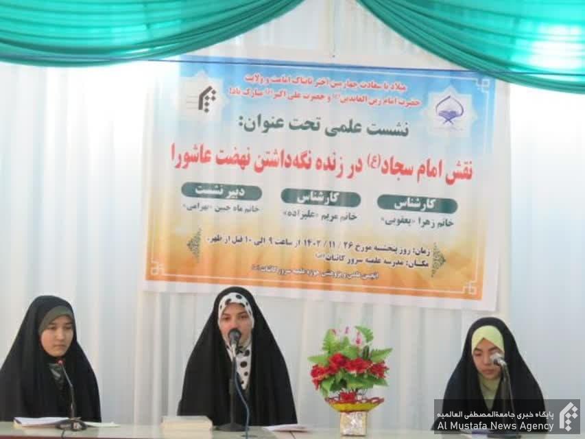نشست با تلاوت قرآن کریم آغاز شد و سپس کارشناسان برنامه طبق سوالات دبیر علمی نشست، توضیحات کاملی پیرامون نقش امام سجاد(ع) در زنده نگه داشتن نهضت عاشورا ارائه داشتند.