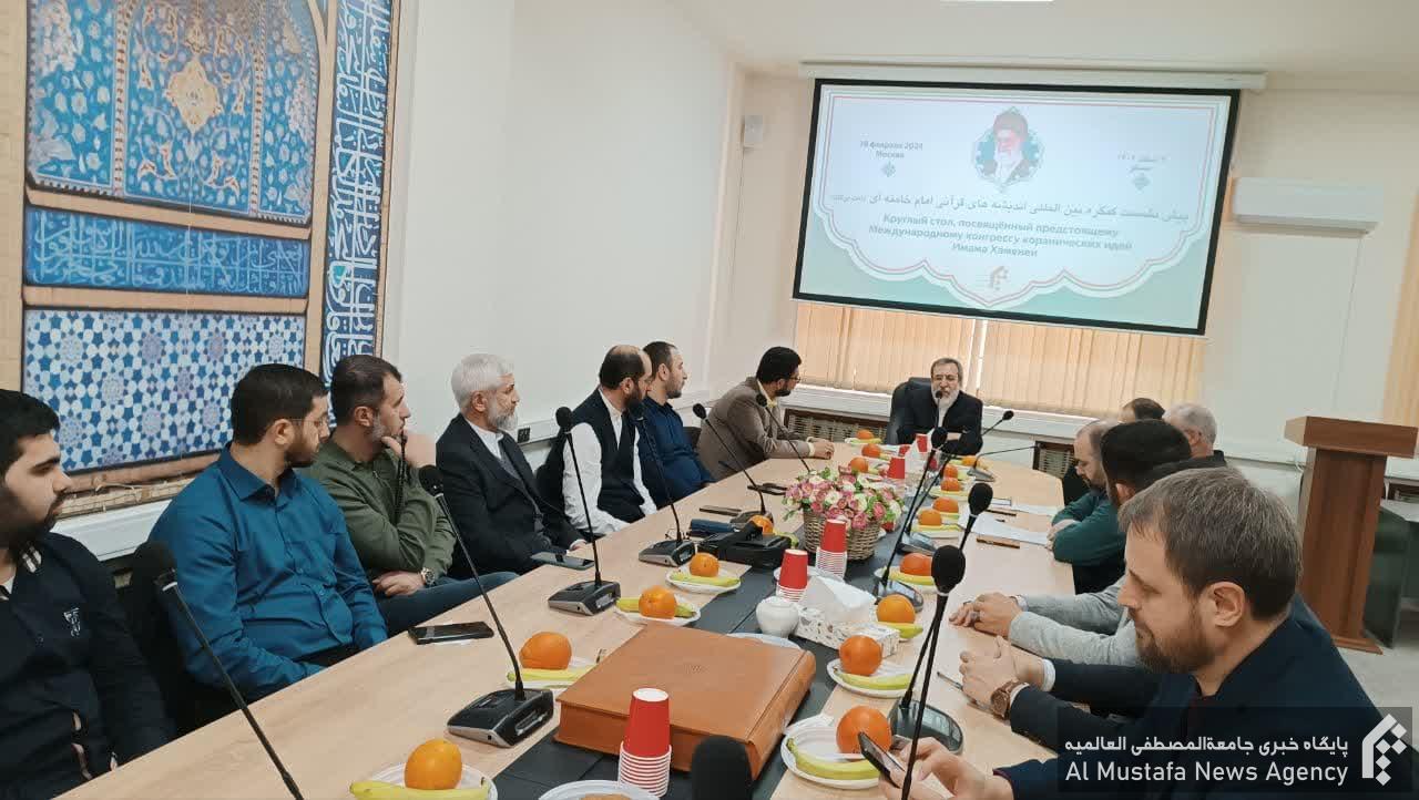 حجت الاسلام والمسلمین عبدالهی نماینده جامعةالمصطفی در روسیه پیش نشست کنگره بین المللی اندیشه های قرانی مقام معظم رهبری که ۹ اسفندماه در مسکو برگزار شد، ضمن ارائه گزارشی از اهداف رسالت ها و رویکردهای دبیرخانه کنگره بین المللی اندیشه های قرانی امام خامنه ای، بر اهمیت معرفی جریان تفسیری بیش از ۵۰ ساله رهبر معظم انقلاب تصریح نمود.
