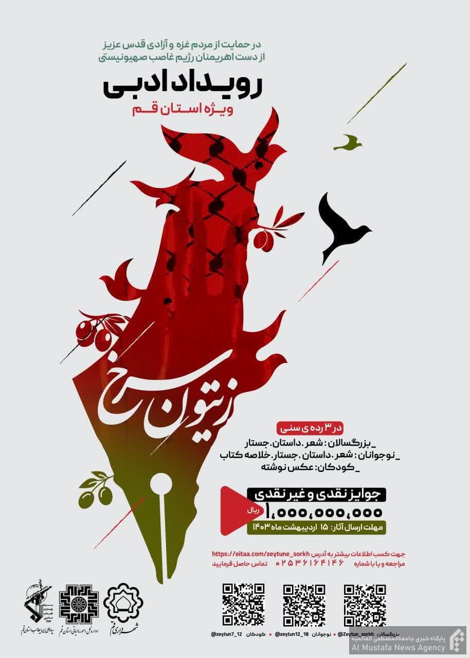 در حمایت از مردم غزه و آزادی قدس عزیز از دست اهریمنان رژیم غاصب صهیونیستی، رویداد ادبی «زیتون سرخ» ویژه استان قم برگزار میگردد.