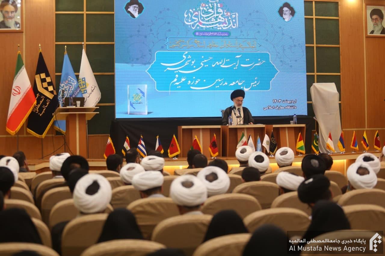آیت الله سیدهاشم حسینی بوشهری در کنگره بین المللی اندیشه های قرآنی حضرت آیت الله خامنه ای و اجلاسیه اساتید معارف اسلامی سراسر کشور که در دانشگاه معارف اسلامی قم برگزار شد، ضمن تبریک روز معلم و تجلیل از یاد و خاطره استاد شهید مطهری، با اشاره به روایتی از امام هادی علیه السلام در رابطه با جایگاه قران در تجلی زندگی مومنانه اظهار داشت: با این که همواره معارف قرآنی در مسیر تحقیق، پژوهش و ترویج و نشر و بسط قرار دارد، همچنان شادابی و طراوتش حفظ و روز به روز بر آن افزوده می شود.