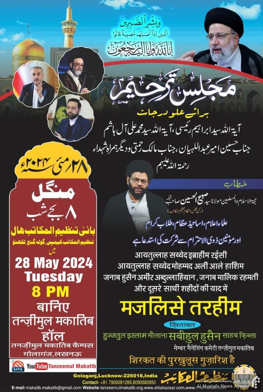 گفتنی است مجلس هفتم شهدای خدمت در شهر لکهنو از طرف نمایندگی جامعه المصطفی العالمیه برگزار خواهد شد.