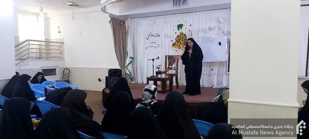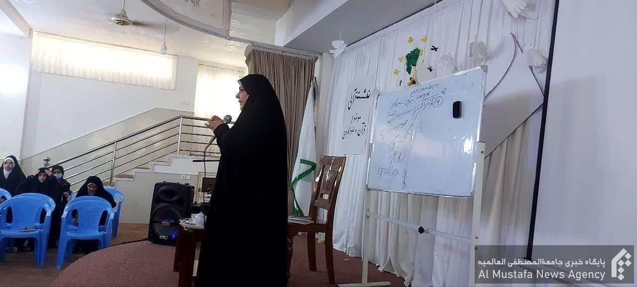 نشست ابتدا با تلاوت کلام وحی توسط مائده رضایی آغاز شد و سپس خانم عباسی موضوعات مختلفی از جمله: آشنایی با علوم قرآنی عقاید، اخلاق، احکام، و تفسیر قرآن، تحریف در قرآن کریم، وظایف حضرت علی علیه السلام بعداز رحلت پیامبر صلی الله علیه و آله، اهمیت اندیشه و تفکر درانسان، مرحله اندیشه در انسان، علوم کاربردی قرآن کریم باعث پویایی جامعه اسلامی ، کدهای قرآنی را به صورت کامل توضیح دادند.