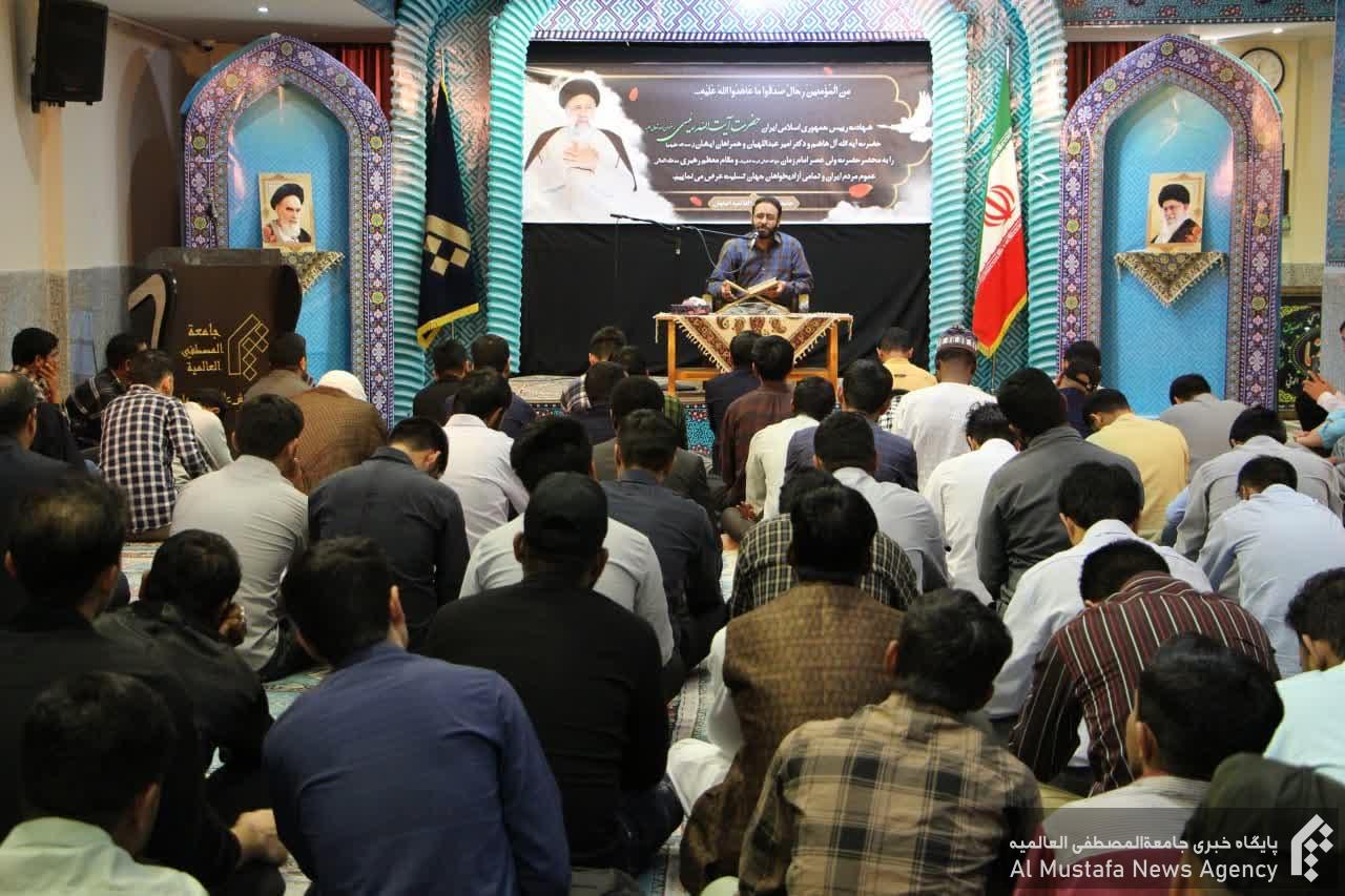 عضو هیئت علمی جامعة المصطفی در ادامه به تلاشهای شبانه روزی آیت الله رئیسی که همراه با اخلاص بود اشاره نموده و خدمت به مردم را هدف ایشان در دوران مسئولیتشان ذکر کرد.