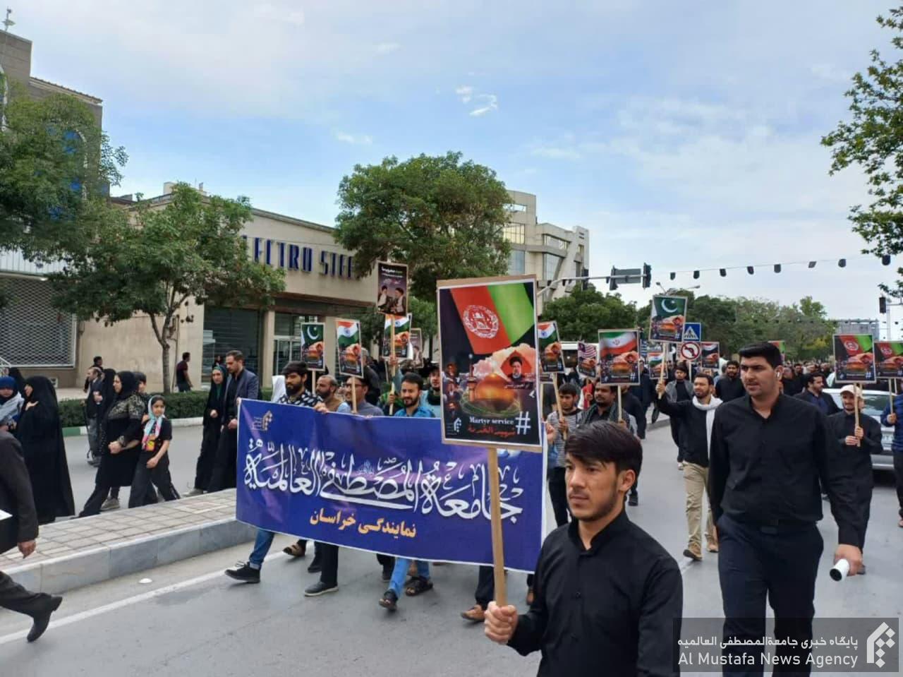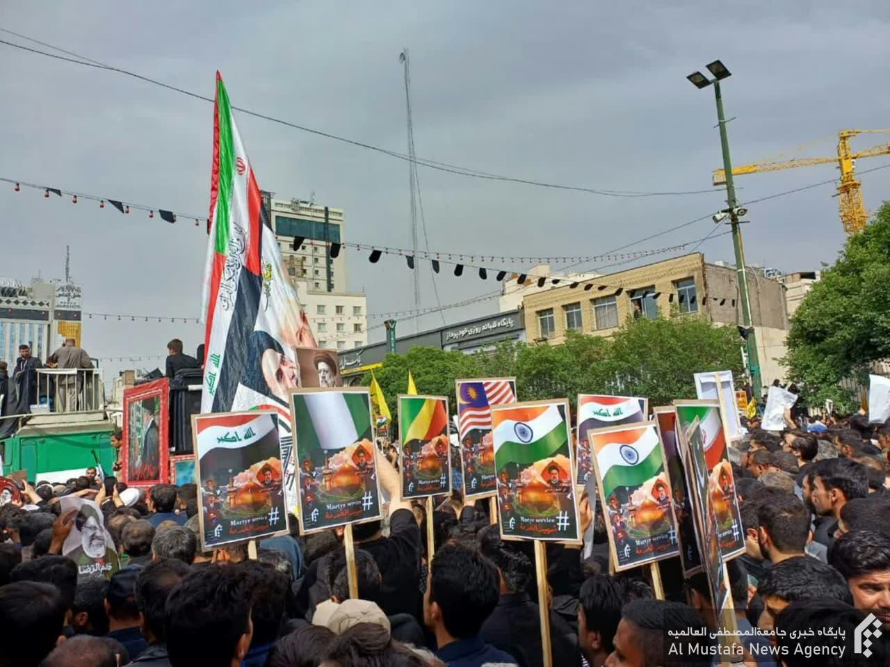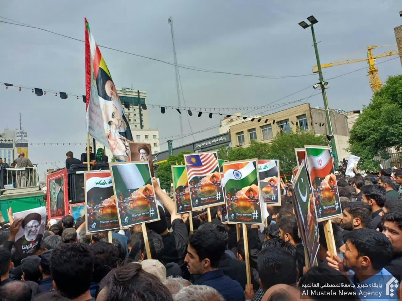 جمعی از طلاب ملل مختلف، اساتید و کارکنان نمایندگی المصطفی در خراسان در کنار آحاد مردم، داغدار، سوگوار، ولایتمدار و قدرشناس ایران اسلامی و شهر مقدس مشهد، با حضور در مراسم تشییع ابدان مطهر شهدای راه خدمت به ویژه رییس جمهور مردمی و خدمتگزار، مجاهد نستوه و با اخلاص، خادم الرضا علیه السلام و شهید خدمت شهید آیت الله حاج سیدابراهیم رییسی پیام تبریک خود را به مقام شامخ این شهدای والامقام و همچنین مراتب تسلیت و تعزیت خود را به پیشگاه مقدس حضرت ولی عصر(عج)، امام رضا علیه السلام، مقام معظم رهبری، حوزههای علمیه و همه مردم داغدیده ایران اسلامی ابراز نمودند.