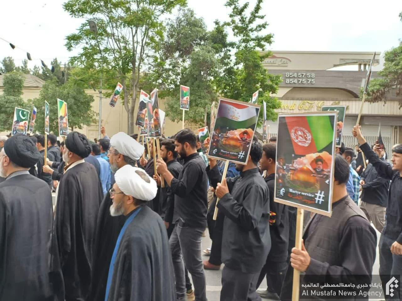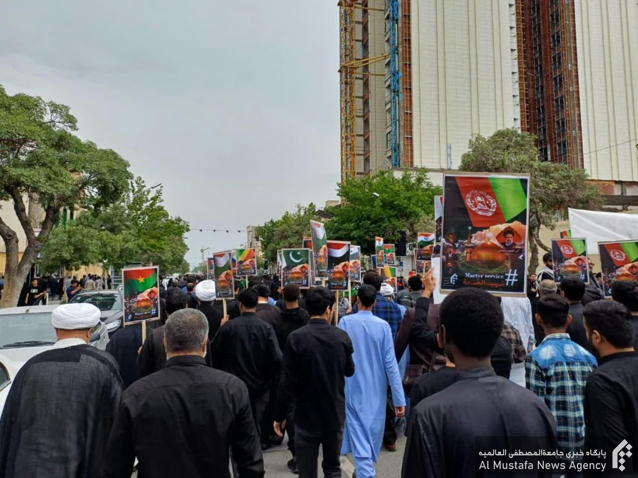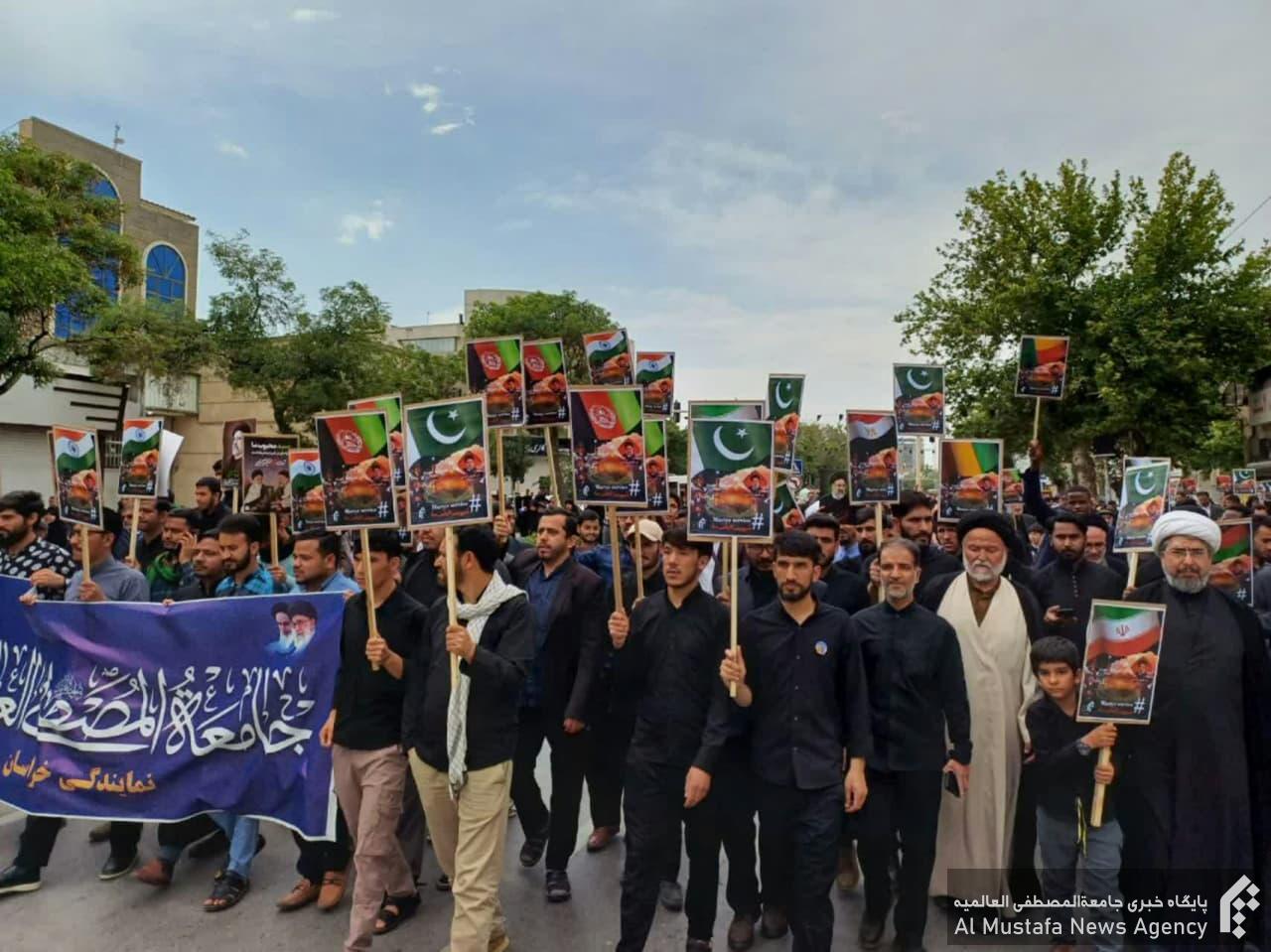 جمعی از طلاب ملل مختلف، اساتید و کارکنان نمایندگی المصطفی در خراسان در کنار آحاد مردم، داغدار، سوگوار، ولایتمدار و قدرشناس ایران اسلامی و شهر مقدس مشهد، با حضور در مراسم تشییع ابدان مطهر شهدای راه خدمت به ویژه رییس جمهور مردمی و خدمتگزار، مجاهد نستوه و با اخلاص، خادم الرضا علیه السلام و شهید خدمت شهید آیت الله حاج سیدابراهیم رییسی پیام تبریک خود را به مقام شامخ این شهدای والامقام و همچنین مراتب تسلیت و تعزیت خود را به پیشگاه مقدس حضرت ولی عصر(عج)، امام رضا علیه السلام، مقام معظم رهبری، حوزههای علمیه و همه مردم داغدیده ایران اسلامی ابراز نمودند.