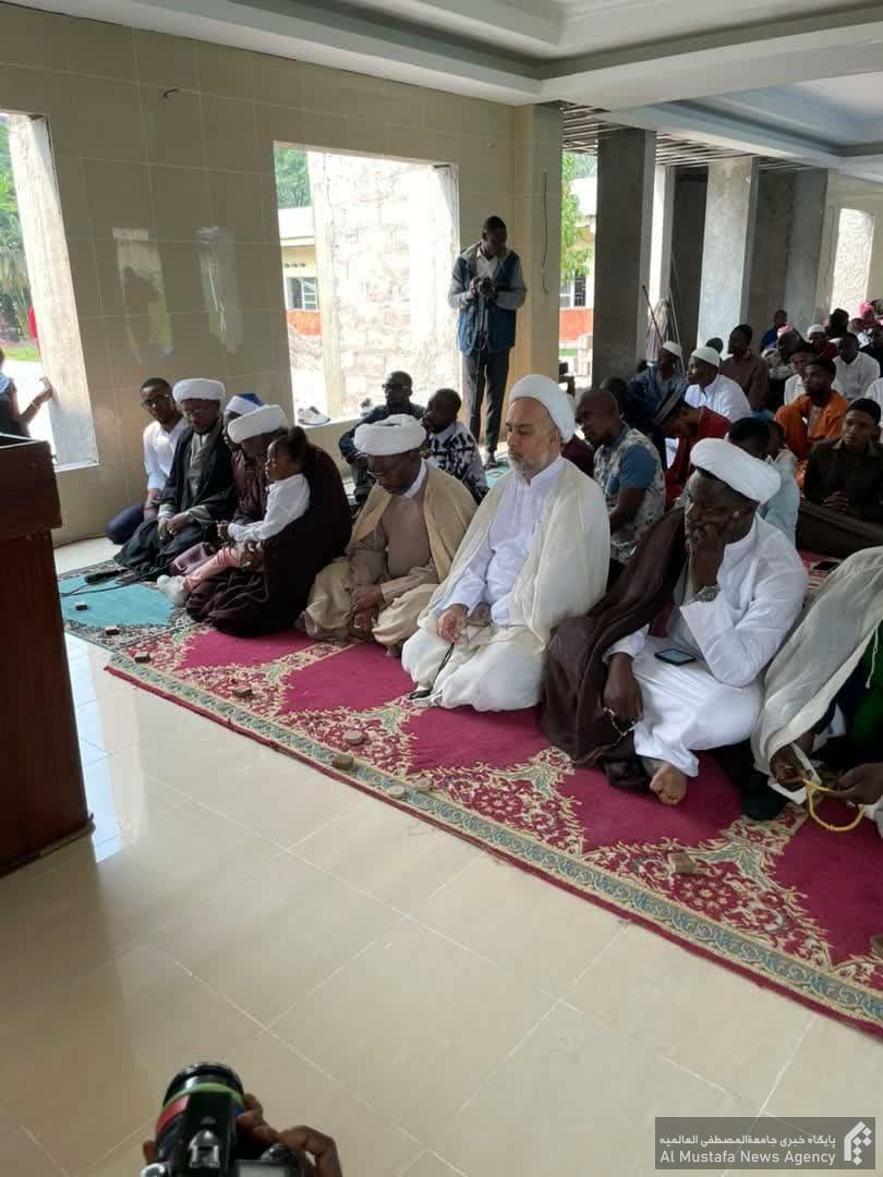 مراسم نماز عید سعید قربان در دانشگاه اسلامی کنگو با حضور طلاب ، اساتید ، کارکنان دانشگاه و خانواده های آنان و ائمه مساجد شیعی کینشاسا در محل مسجد در حال ساخت دانشگاه برگزار شد .