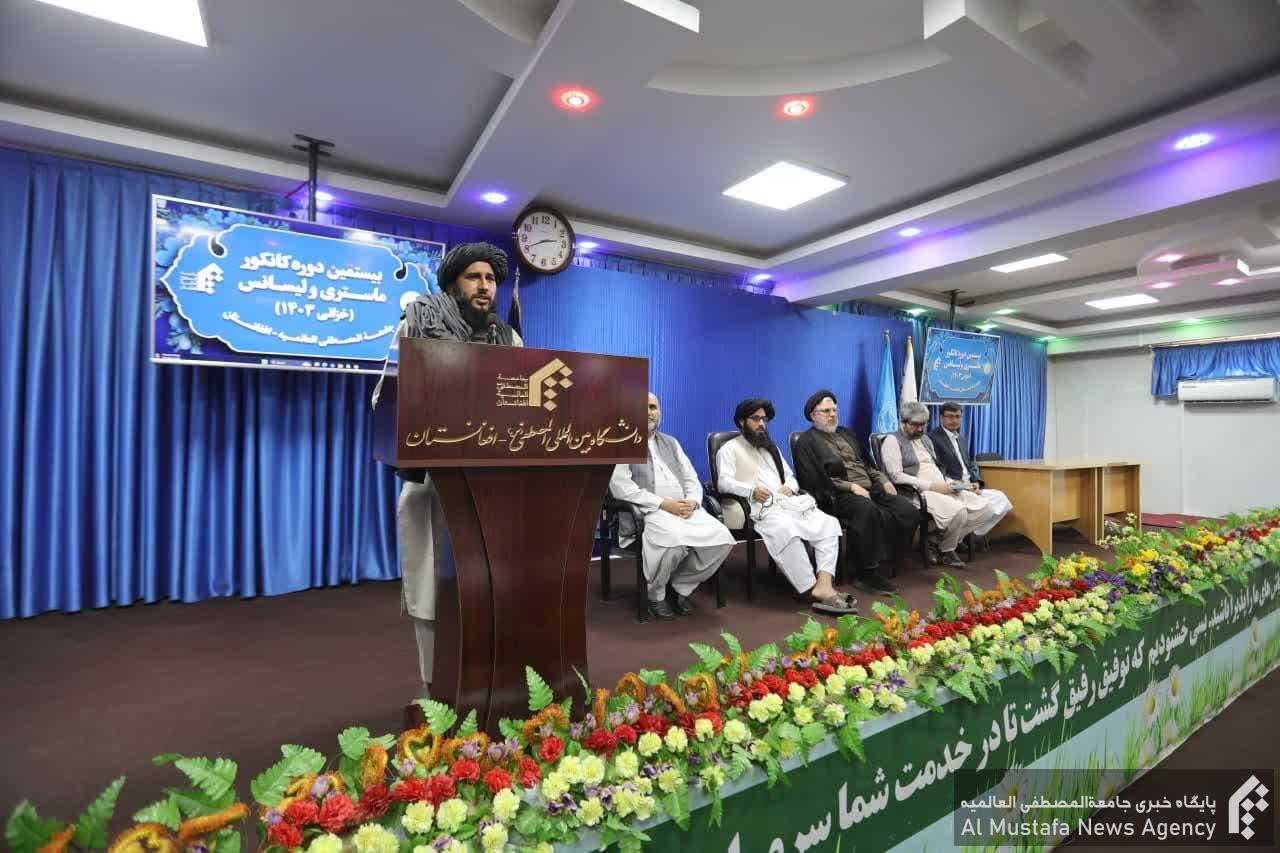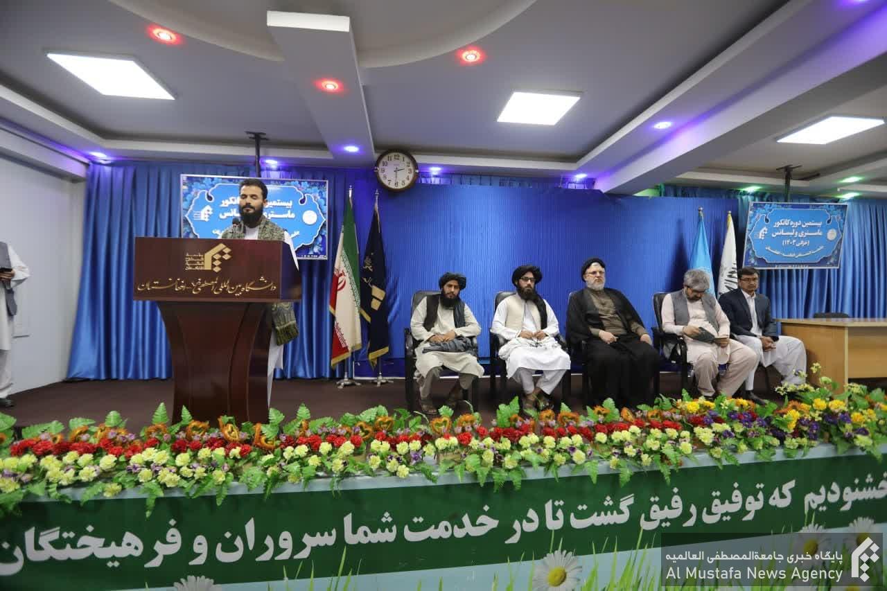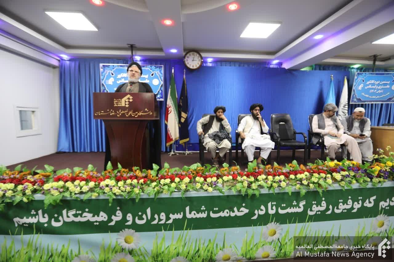 حجت الاسلام و المسلمین سیدعبدالحمید ثابت رئیس نمایندگی جامعة المصطفی افغانستان صحبت نموده و اظهار داشت: نمایندگی جامعة المصطفی افغانستان برای خدمت به مردم افغانستان تلاش می نماید که شرکت بیش از ۸۰۰ نفر از جوانان در مقطع کارشناسی و کارشناسی ارشد نشان دهنده علاقه مندی جوانان این مرز و بوم به علم و دانش می باشد.