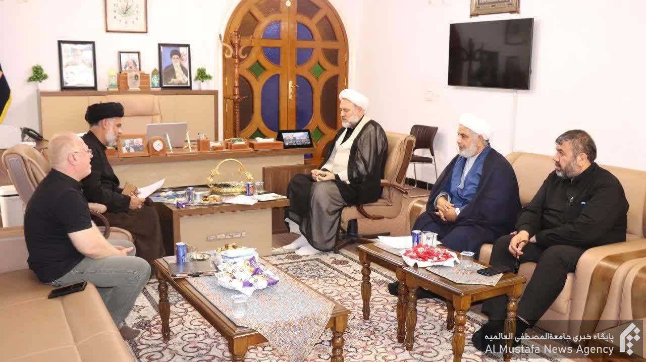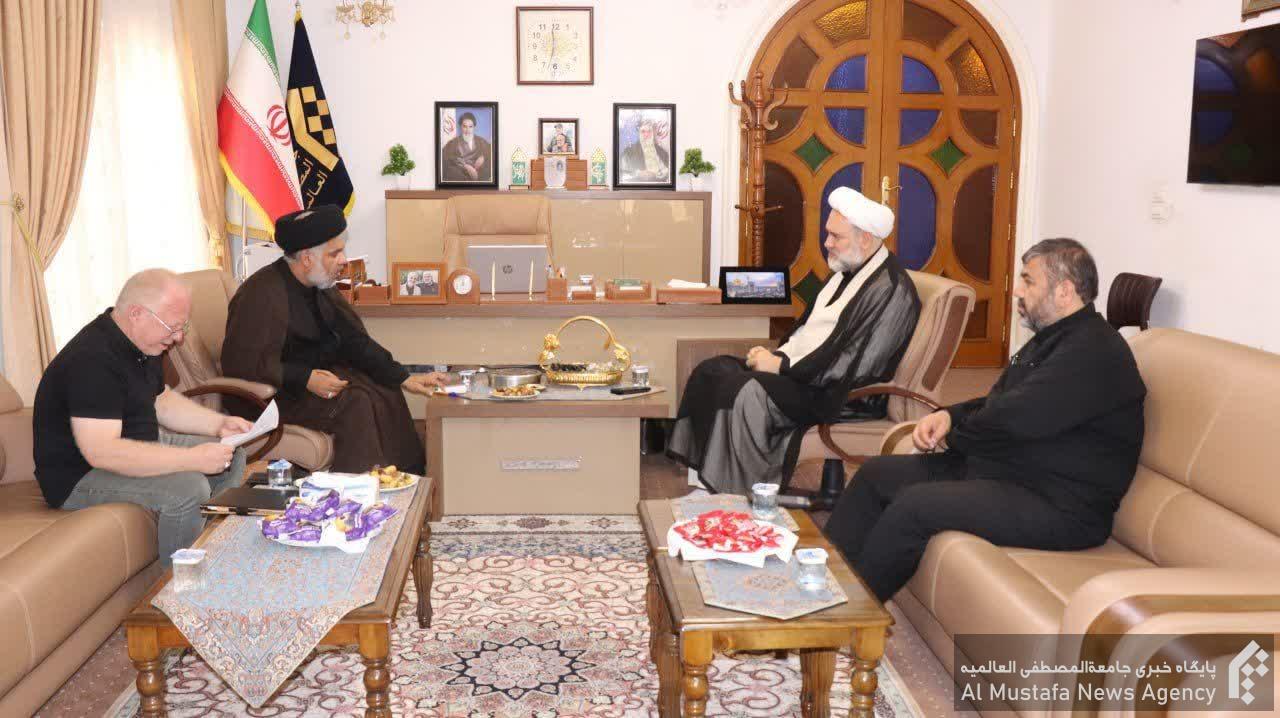 در این دیدار حجتالاسلام والمسلمین محسنزاده و عبدالمطلب الشوقی ضمن پیگیری موضوعاتی حول اهمیت ارتباط مستمر بین حلقههای عقیدتی گروههای مردمی عراق و جامعة المصطفی العالمیه به منظور هماهنگی اقدامات لازم برای فعال سازی روند آموزش و توانبخشی حلقه های گروههای مردمی و خانوادههای آنها به ویژه فرزندان و خانوادهی شهدا به گفتوگو پرداختند.