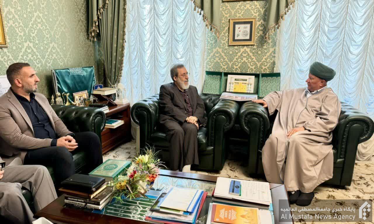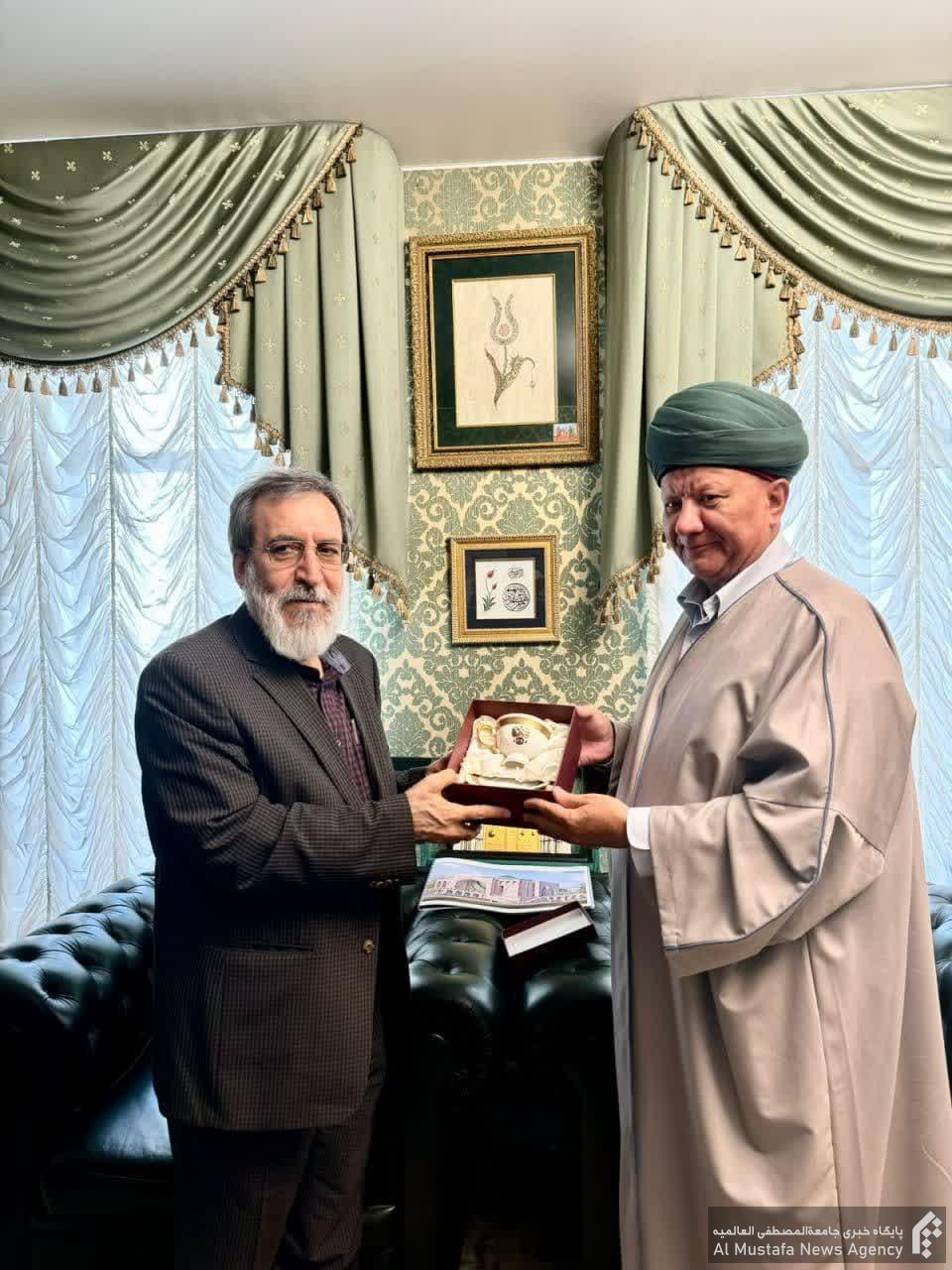 حجت الاسلام والمسلمین عبدالهی نماینده سابق جامعةالمصطفی در روسیه با مفتی آلبیر گرگانف دیدار و در خصوص اهمیت تداوم همکاری ها بین دانشگاه اسلامی مفتیات و جامعةالمصطفی در دوره جدید مدیریت نمایندگی المصطفی در روسیه گفتگو کردند.