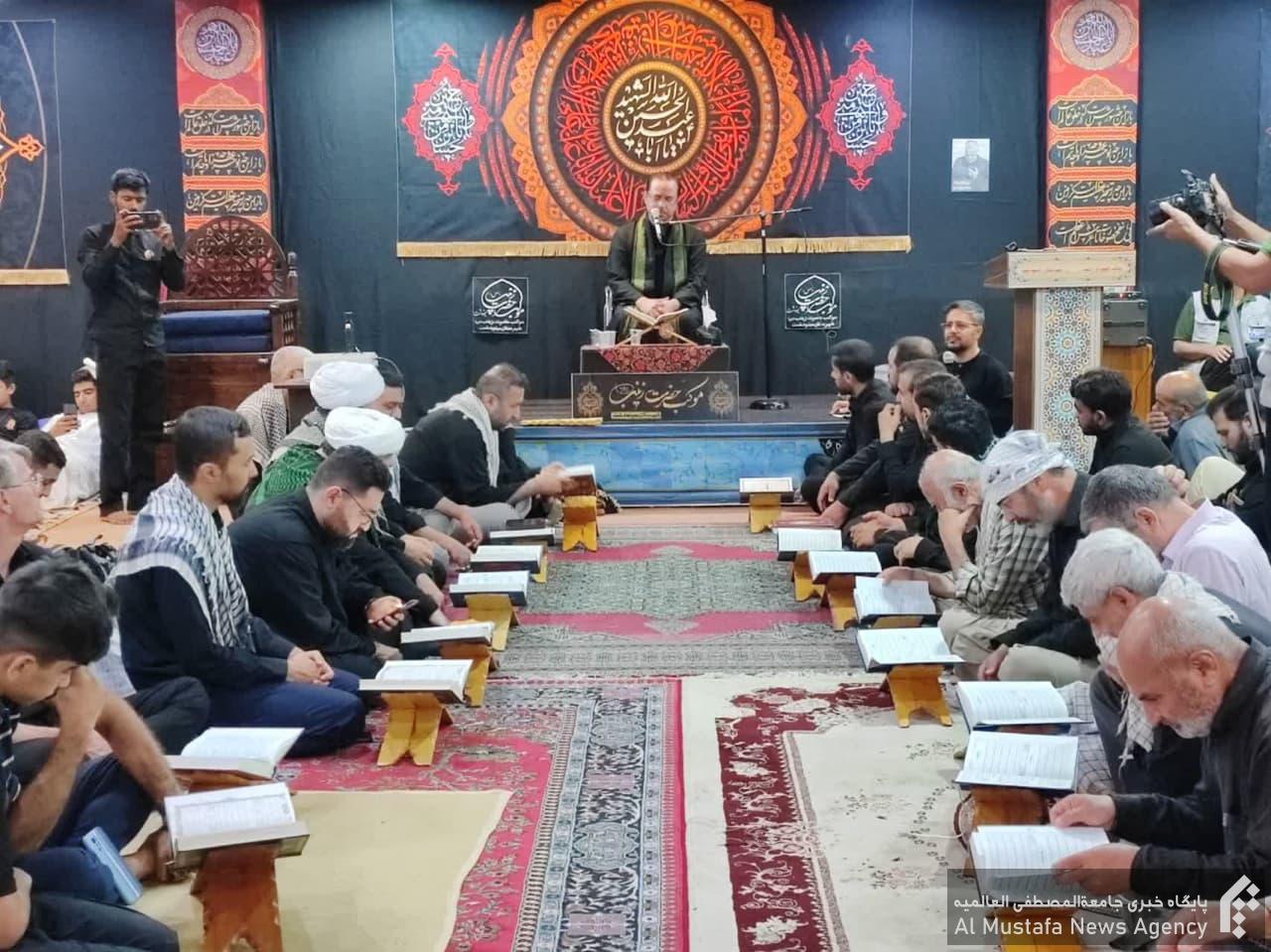 کاروان قرآنی چند ملیتی جامعه المصطفی در موکب حضرت زینب سلام الله علیها در شهر کربلا برنامه های فرهنگی و قرآنی اجرا کرد