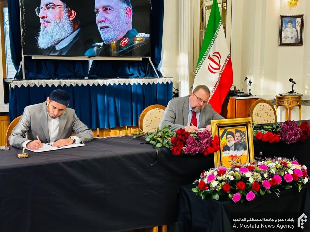 این شخصیتها روز پنجشنبه با حضور در اقامتگاه سفارت ایران در مسکو، ضمن امضای دفتر یادبود شهادت سید حسن نصرالله و سردار عباس نیلفروشان و همرزمان شهید ایشان به ابراز همدردی پرداختند.