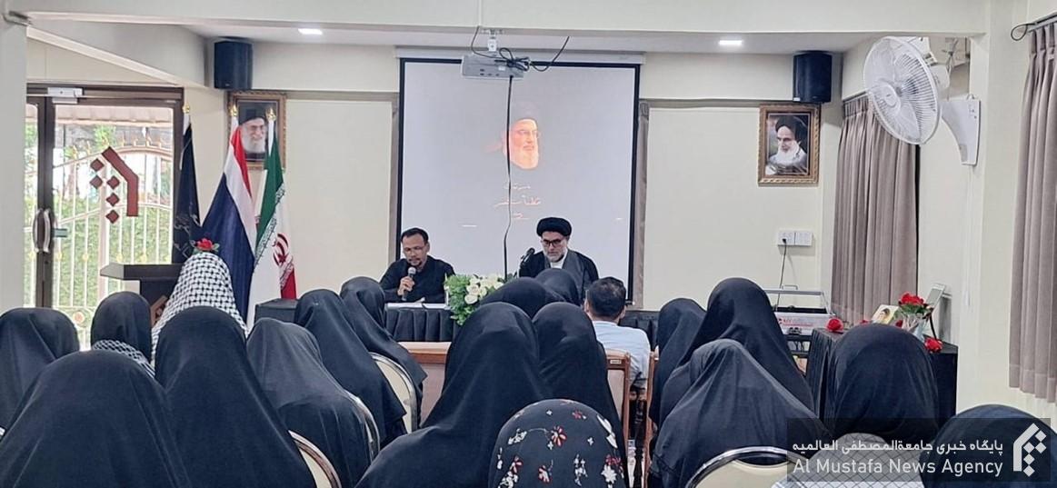 در این مراسم و پس از قرائت آیاتی چند از کلام الله مجید، کلیپی تاثیر گذار از زندگی آن مجاهد بزرگ پخش شد و سپس حجت الاسلام سید هبت الله صدرالسادات، نماینده المصطفی در تایلند طی سخنانی به برخی از ویژگی های آن شهید والا مقام اشاره کرد.