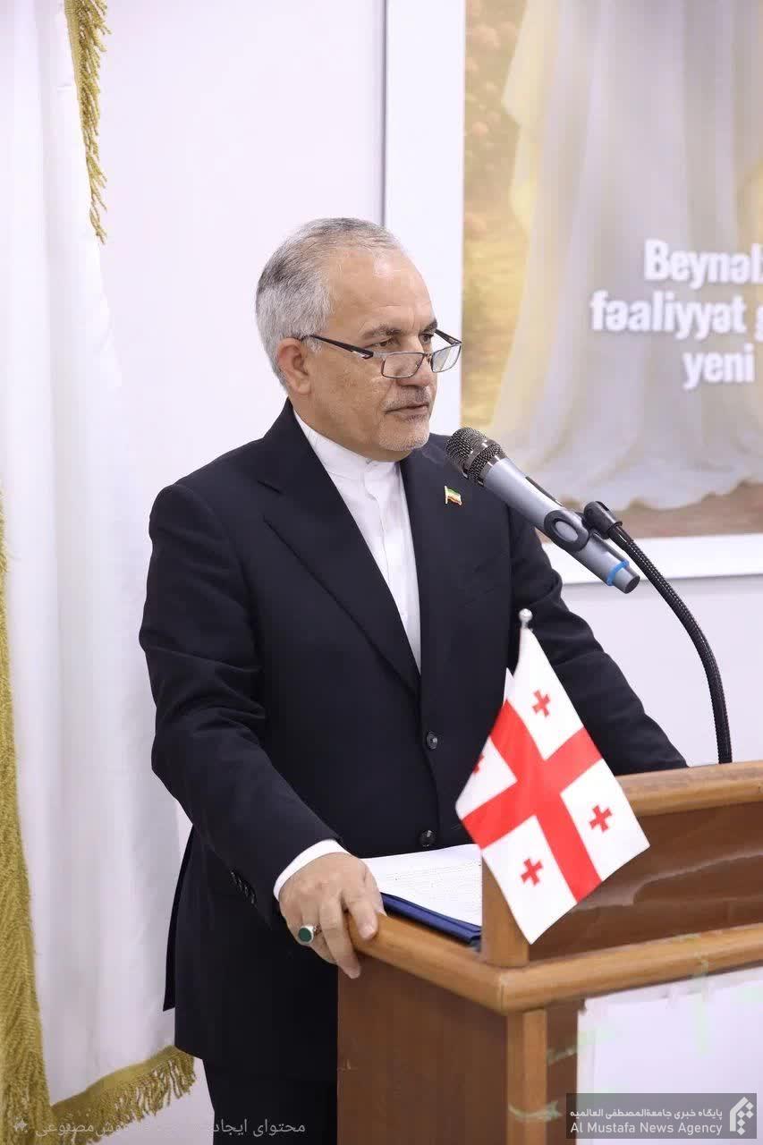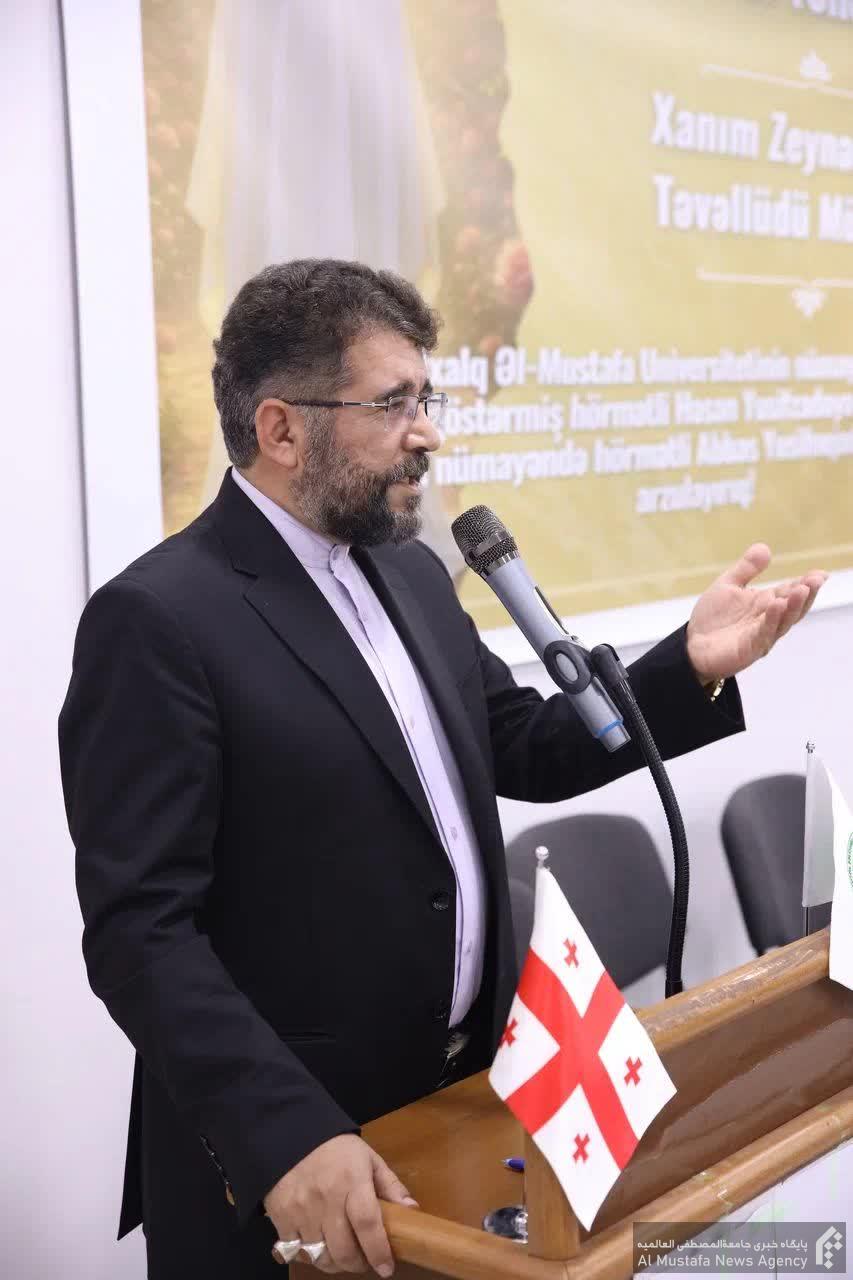 در این مراسم، جناب آقای اکبر ادیب، سفیر جمهوری اسلامی ایران در گرجستان، شیخ فائق نبیاف، رئیس اداره مسلمانان گرجستان، دکتر حسن یوسفزاده، نماینده سابق جامعهالمصطفی، و حجتالاسلام عباس یوسفنژاد، نماینده جدید جامعهالمصطفی، به ایراد سخنرانی پرداختند.