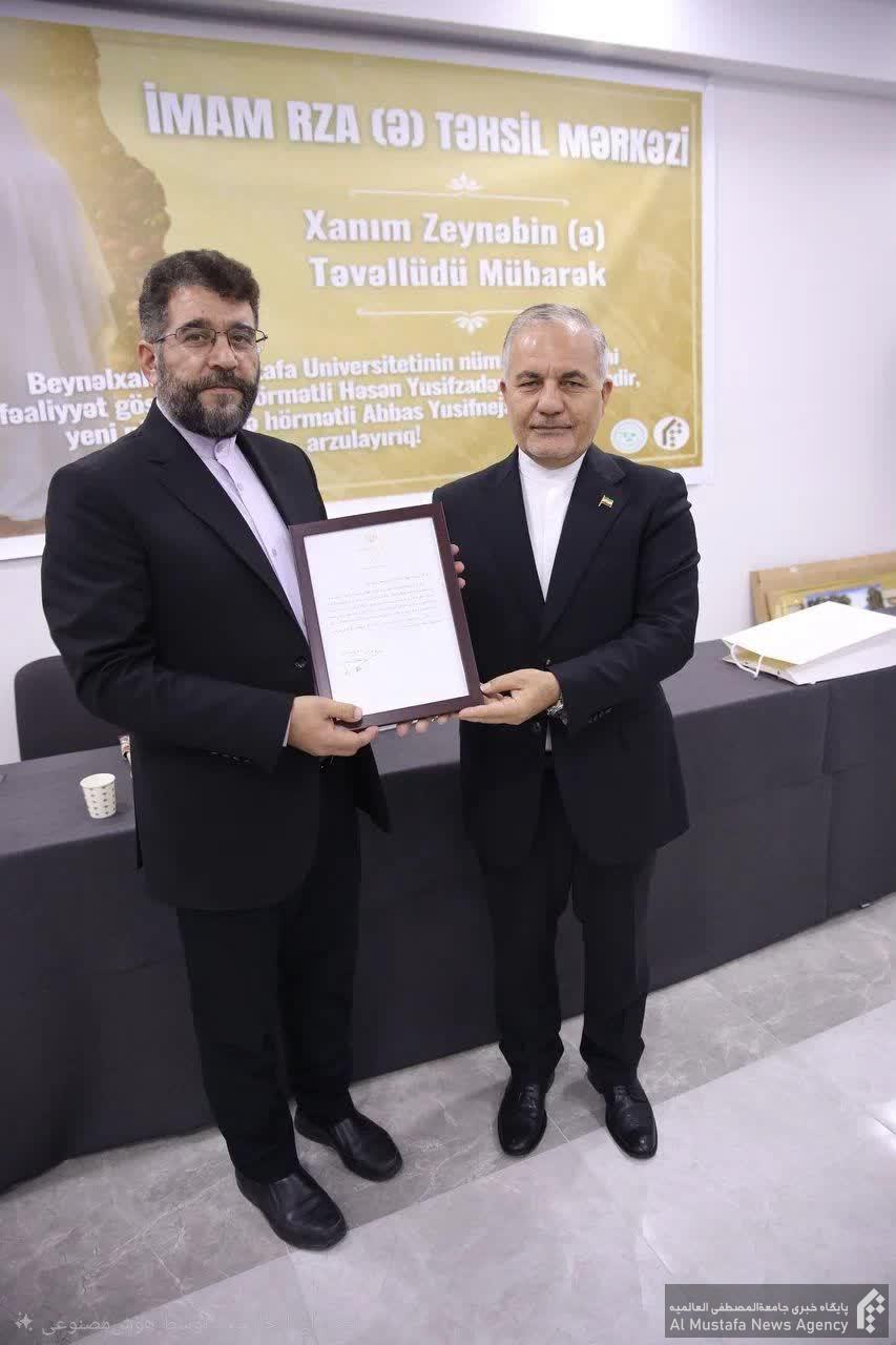 در پایان این آیین، از خدمات و تلاشهای صادقانه دکتر حسن یوسفزاده در دوران مسئولیت وی به عنوان نماینده جامعةالمصطفی العالمیه در گرجستان با اهدای لوح تقدیر، تجلیل بهعمل آمد.