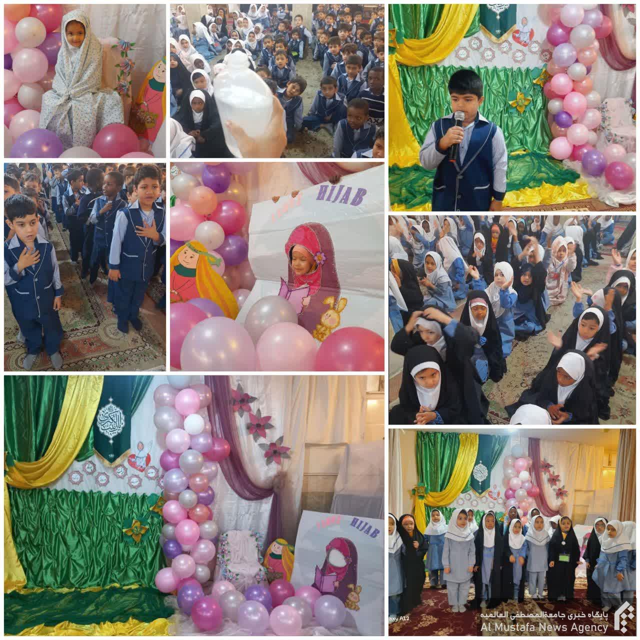 این مراسم با بیان زندگی نامه حضرت زینب(سلام الله علیها)، شعرخوانی ، اجرای سرود ،داستان گویی ،آشنایی با پرستار و تجهیزات پرستاری،تقدیم فاتحه به شهدای مدافعان حرم ادامه یافت در آخر با پخش نماهنگ عمه جان و مولودی ، گرفتن عکس یادگاری در طرح حجاب برتر و پذیرایی پایان یافت .