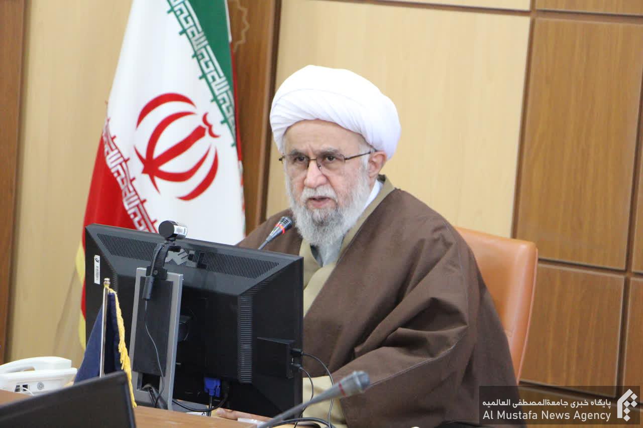آیت الله رمضانی در ادامه در خصوص آسیبها و تحریفهای جدید در حوزه بین الملل اشاراتی نمود.