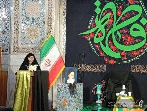 وی در ادامه حضرت زهرا(سلام الله علیها) را الگوی عملی برای همۀ انسانها خواند و تاکید کرد: حضرت زهرا سلام الله علیها تنها یک اسوه برای زنان نیستند،بلکه برای همۀ انسانها در همۀ اعصار الگویی کامل به شمار میآیند. یکی از برجستهترین جلوههای ایشان، ولایتمداری و دفاع بیامان از حریم امامت است. رابطۀ ایشان با امیرالمؤمنین علیه السلام پس از رحلت پیامبر اکرم صلی الله علیه و آله، دیگر تنها رابطه یک همسر با شوهر نبود، بلکه تجلی رابطۀ یک امت با امام و رهبر خود بود. در آن شرایط حساس، تنها سرباز میدان، فاطمه زهرا سلام الله علیها بود. ایشان با درایت و شجاعتی کم نظیر، تمامی توان خویش را بسیج کردند و وارد عرصهای سخت و نفسگیر شدند.