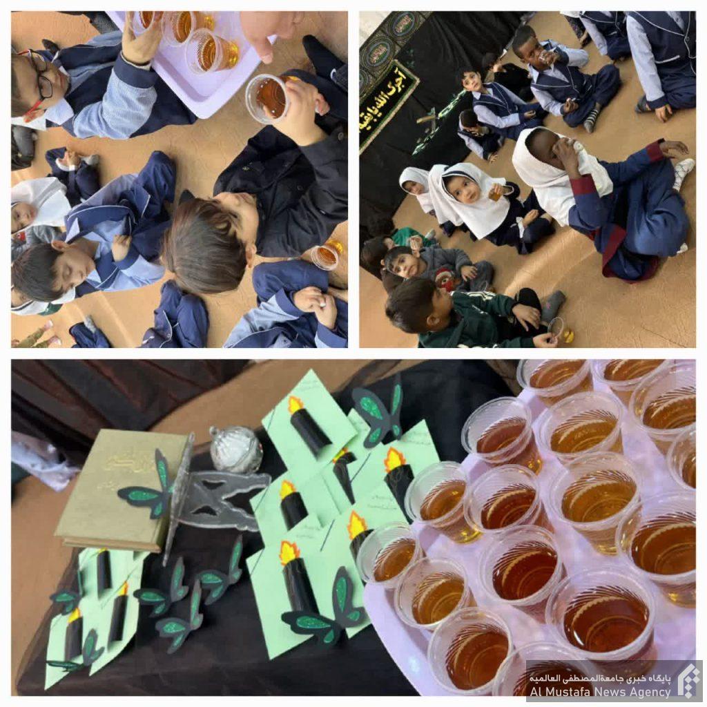این مراسم در پیش دبستاتی قرآنی توحید از مدارس تابعه معاونت آموزش مرکز امور خانوادههای جامعة المصطفی العالمیه همزمان با پخت نذری همراه با پخش حدیث کسا و کارگاه رنگ آمیزی برای مقاطع پایین تر در سالن و حیاط مدرسه همراهِ تلاوت قرآن، شعرخوانی مهدوی، همخوانی زیارت امام زمان (عج) و دکلمه خوانی حضرت زهرا (س) و اجرای سرود “رزق اشک” در نمازخانه آغاز شد.