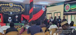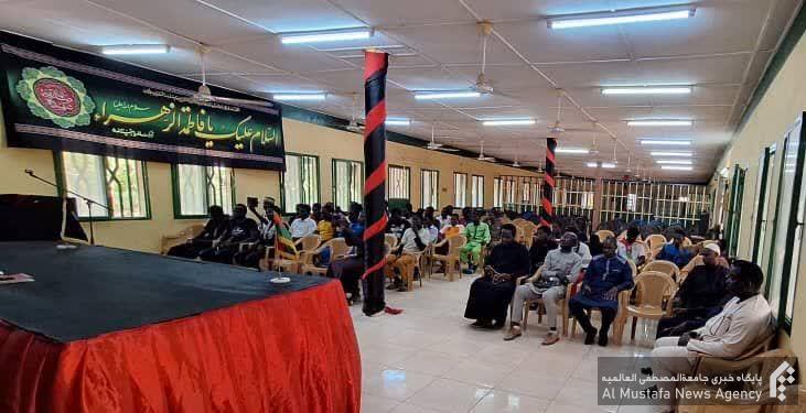 مراسم با تلاوت آیاتی از کلام الله مجید توسط استاد آدم سانا آغاز گردید و سپس حجت الاسلام و المسلمین حداد، نماینده المصطفی با عرض تسلیت به مناسبت ایام فاطمیه، به تبیین وصیت نامه حضرت فاطمه زهرا (سلام الله علیها) و بیان مصائب آن حضرت پرداخت.