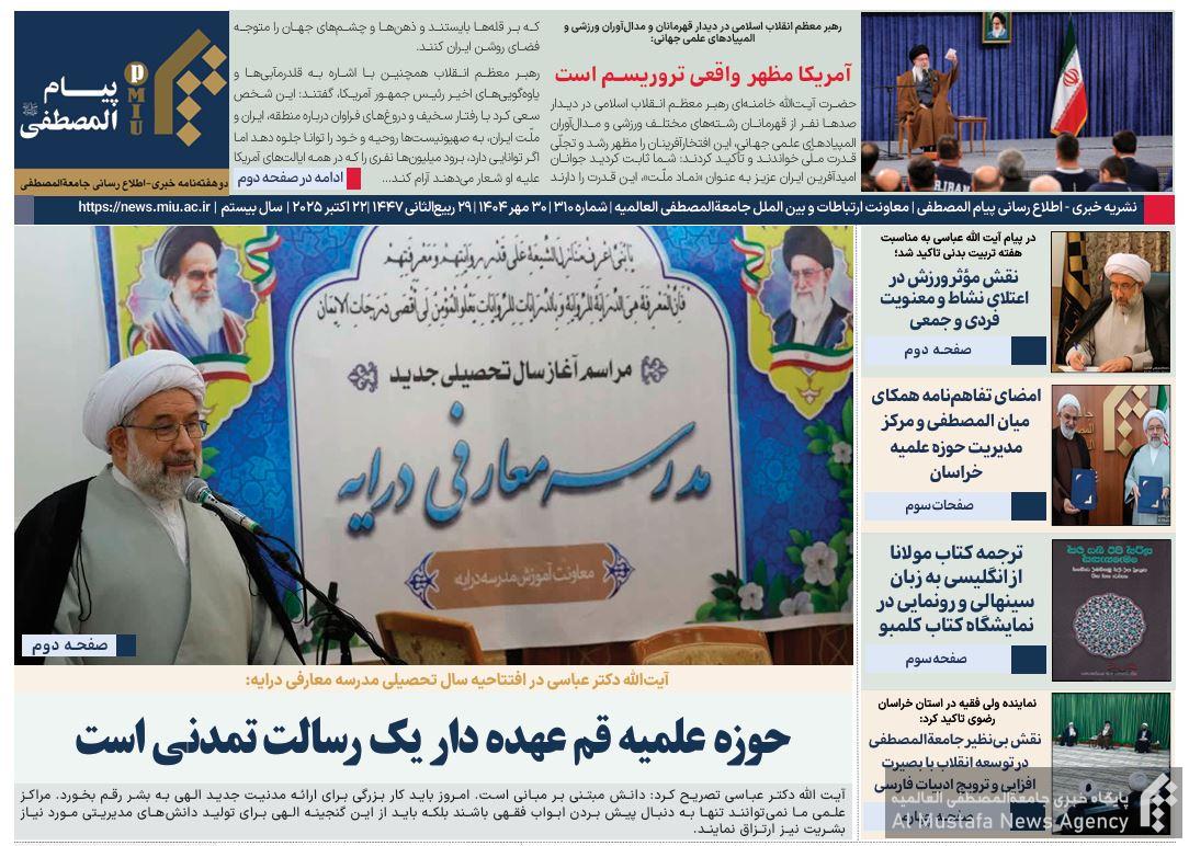 شماره 310 نشریه پیام المصطفی از سوی معاونت ارتباطات و بین الملل جامعةالمصطفی منتشر شد.