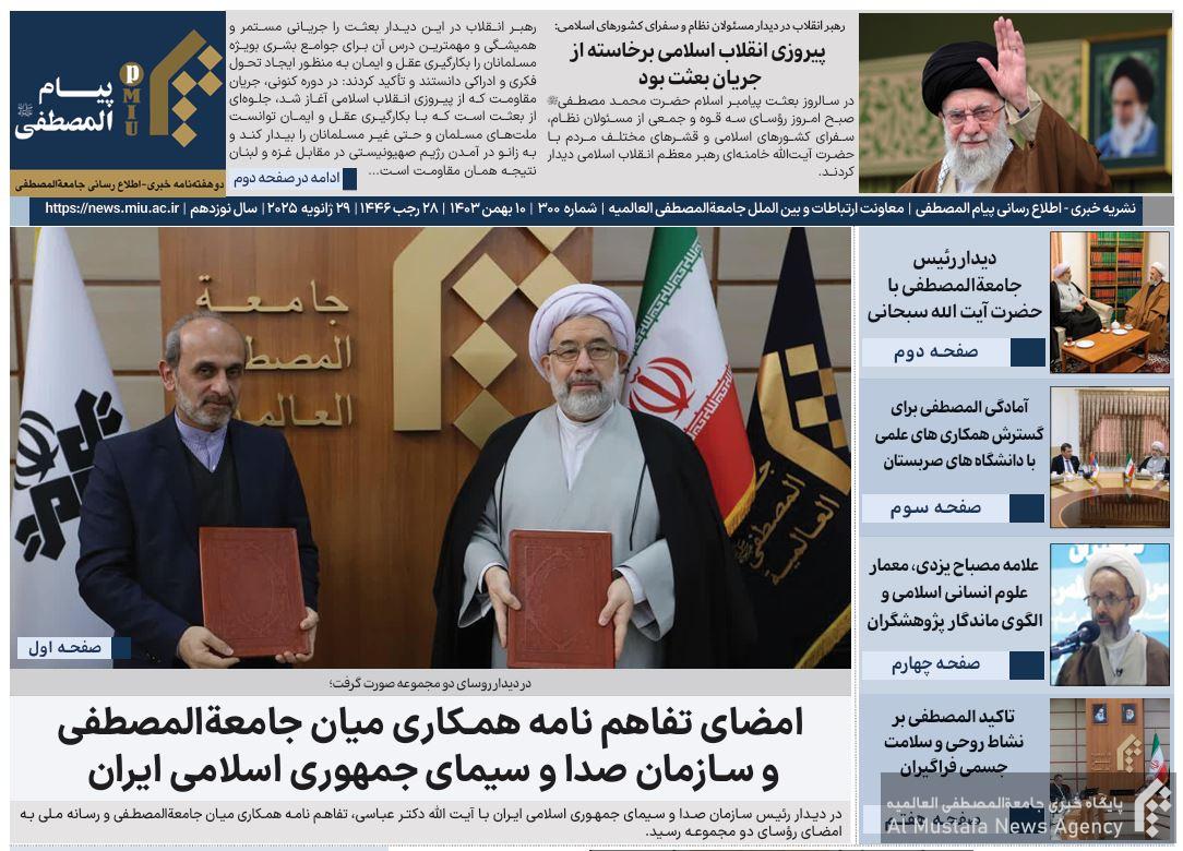 سیصدمین شماره نشریه پیام المصطفی از سوی اداره کل روابط عمومی جامعةالمصطفی العالمیه انتشار یافت.