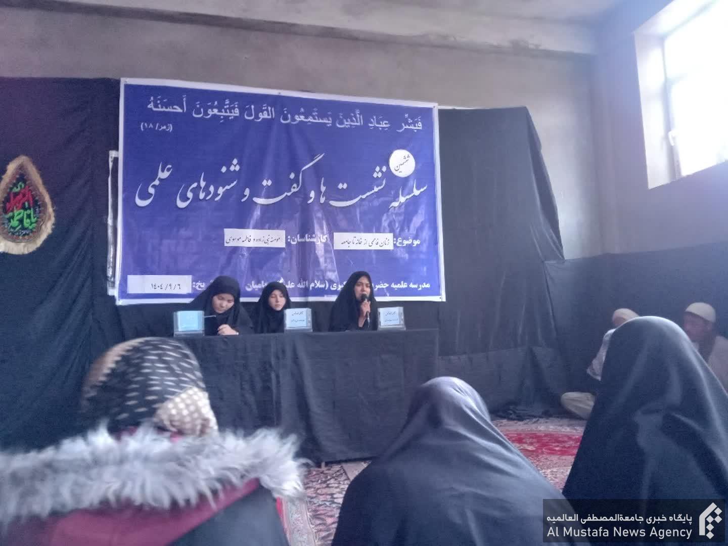 نشست علمی با عنوان « زنان فاطمی از خانه تا جامعه» در مدرسه علمیه زینب کبری(س) ولایت بامیان، نمایندگی افغانستان، با حضور اساتید و طلاب خواهر برگزار گردید.