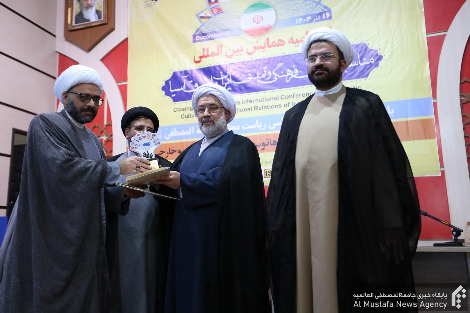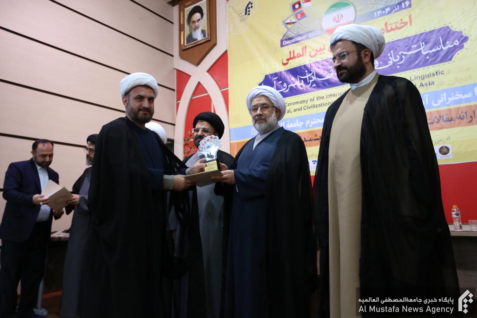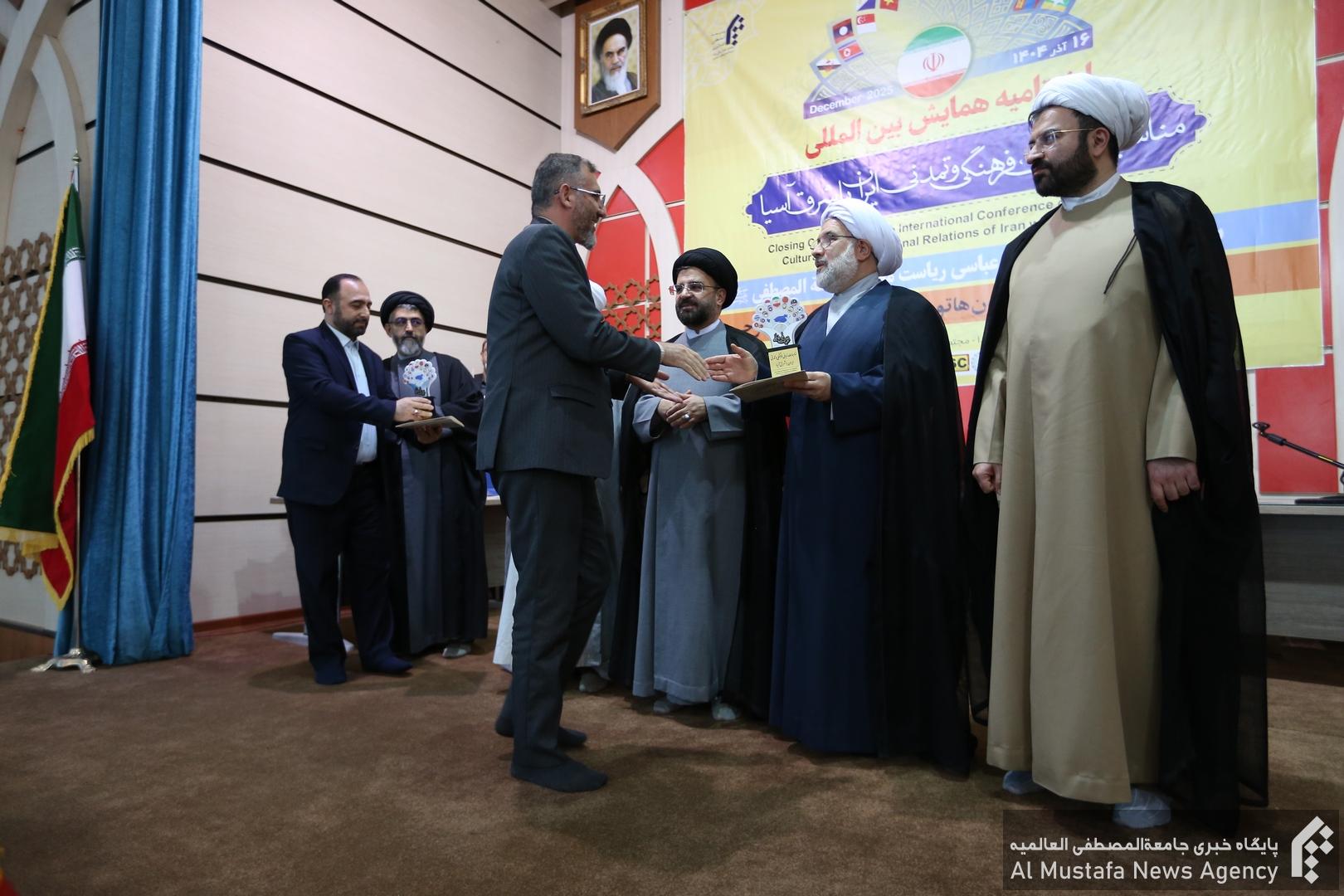 همچنین در بخش پایانی نویسندگان مقالات برگزیده همایش، جوایز خود را از دست آیت الله دکتر عباسی، رئیس جامعةالمصطفی العالمیه دریافت نمودند.