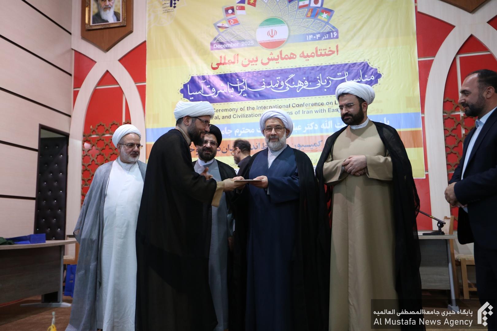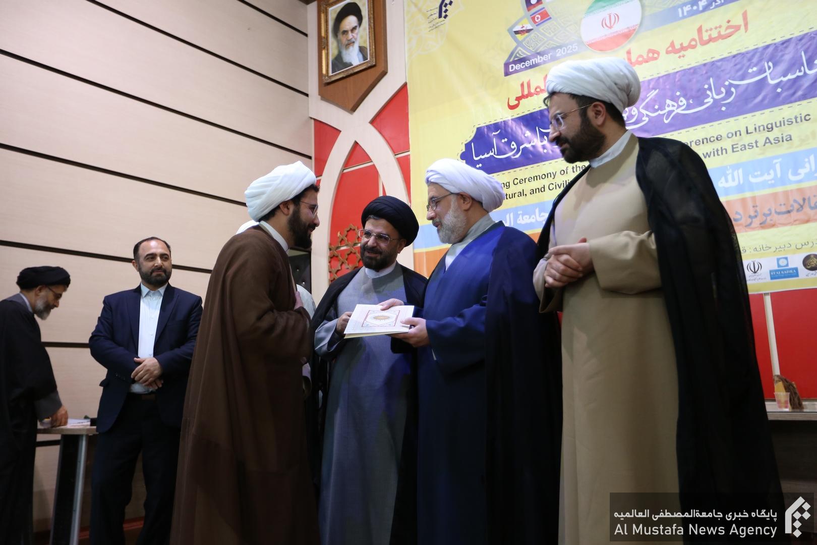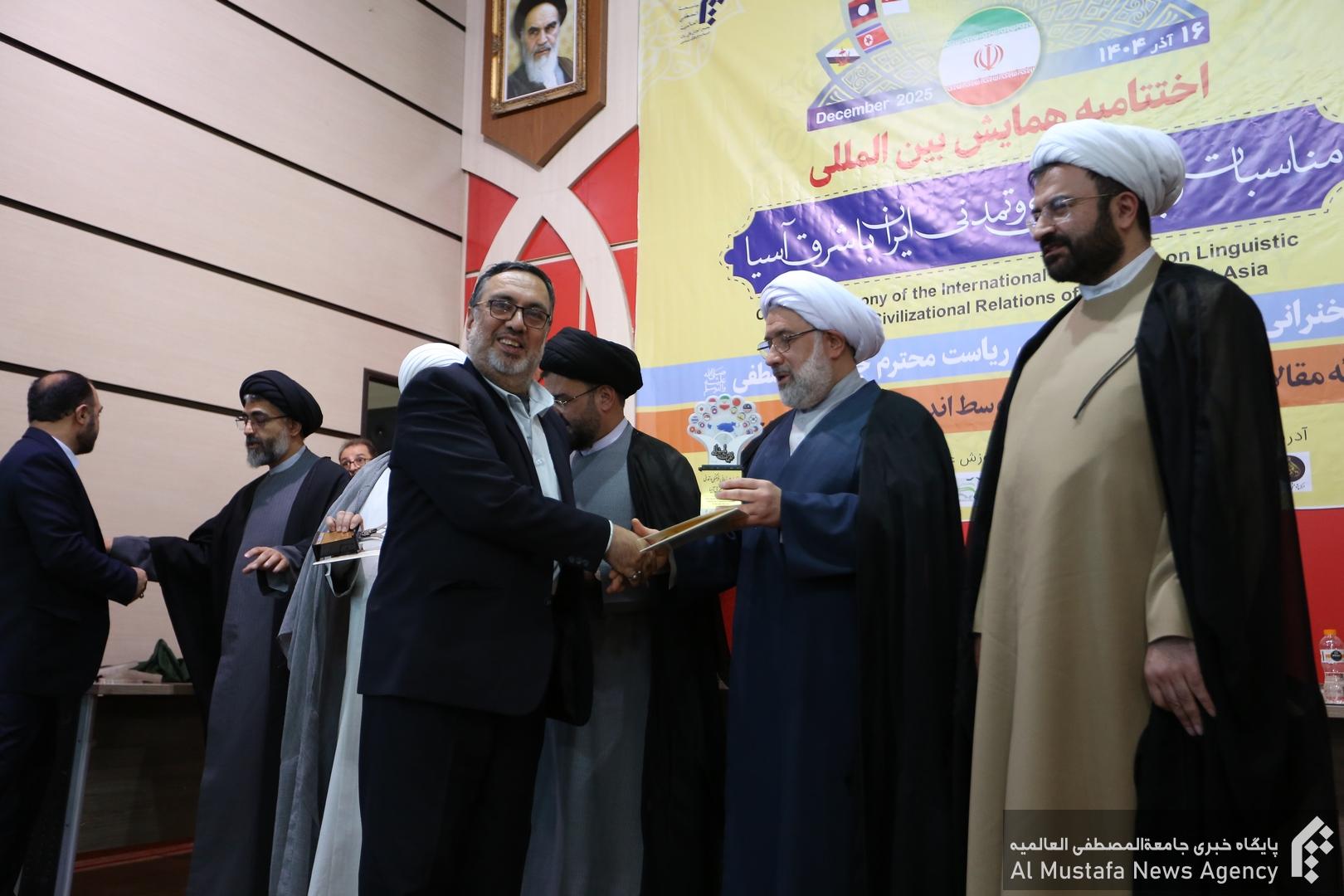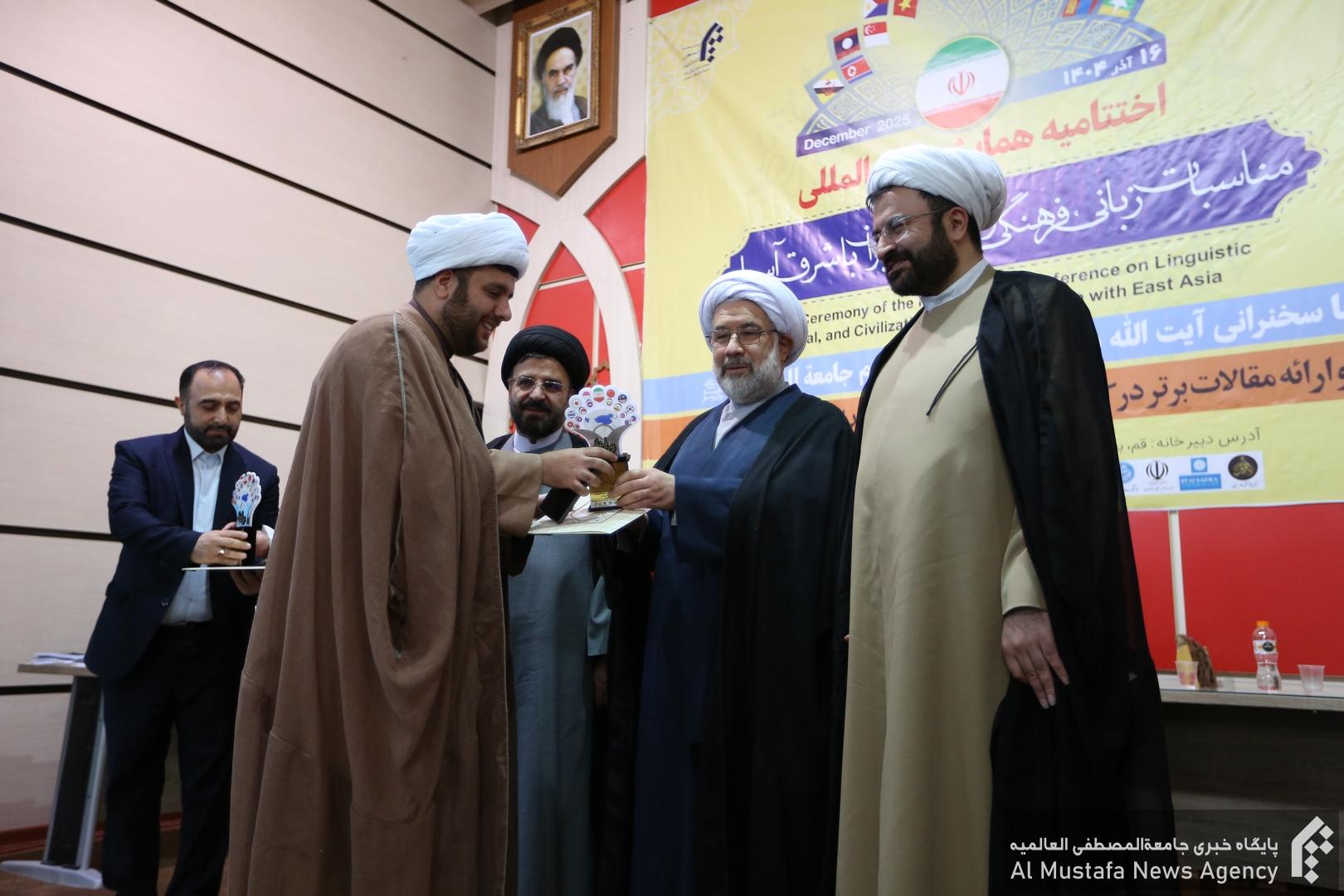 همچنین در بخش پایانی نویسندگان مقالات برگزیده همایش، جوایز خود را از دست آیت الله دکتر عباسی، رئیس جامعةالمصطفی العالمیه دریافت نمودند.