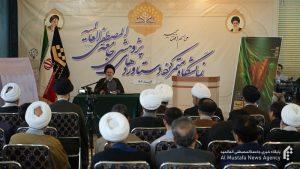 آیت الله حسینی قزوینی در این مراسم خاطرنشان کرد: با پیروزی جمهوری اسلامی و رسیدن صدای اهل بیت به اقصی نقاط جهان، تمام آنچه از زمان ابن تیمیه به بعد علیه پیروان مکتب اهل بیت(علیهم السلام) طی چند صد سال ساخته و پرداخته شده بود نقش بر آب گردید اما همزمان موج جدیدی از دشمنی نیز با این مکتب آغاز شد.