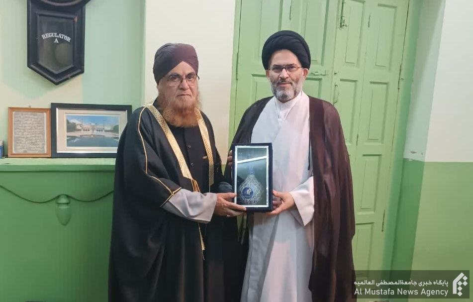 وی در ادامه به نقش علمی جامعه المصطفی در ایجاد وحدت و بیداری اسلامی اشاره نمود و به امام جمعه اهل سنت دهلی یادآور شد که دانشگاه بین المللی جامعه المصطفی بستر بسیار خوبی را برای تحصیل مشتاقان به تعلیم معارف اسلام برای تمامی مذاهب فراهم نموده است
