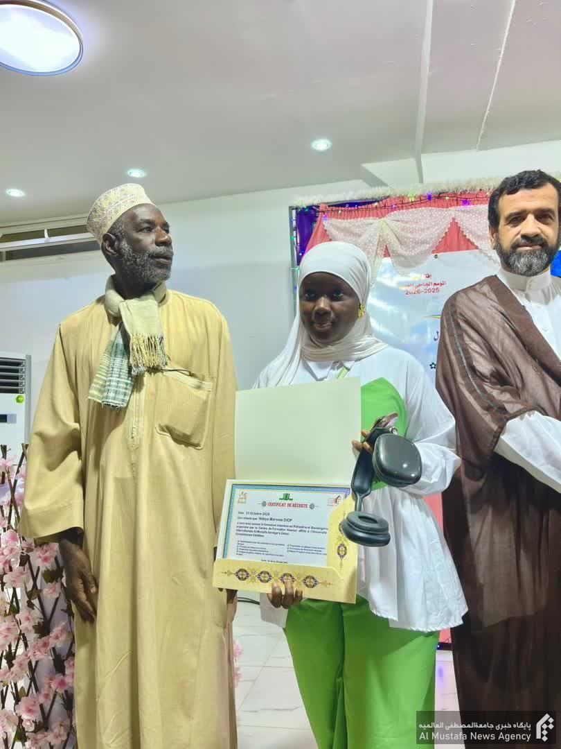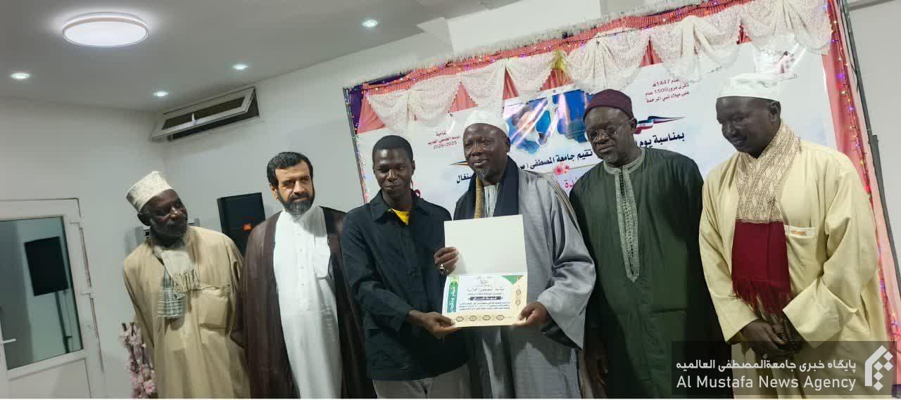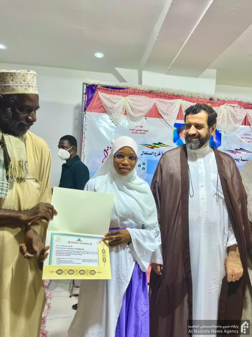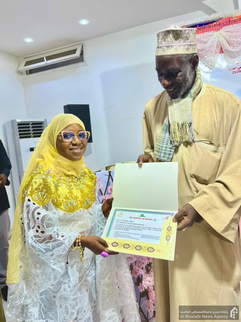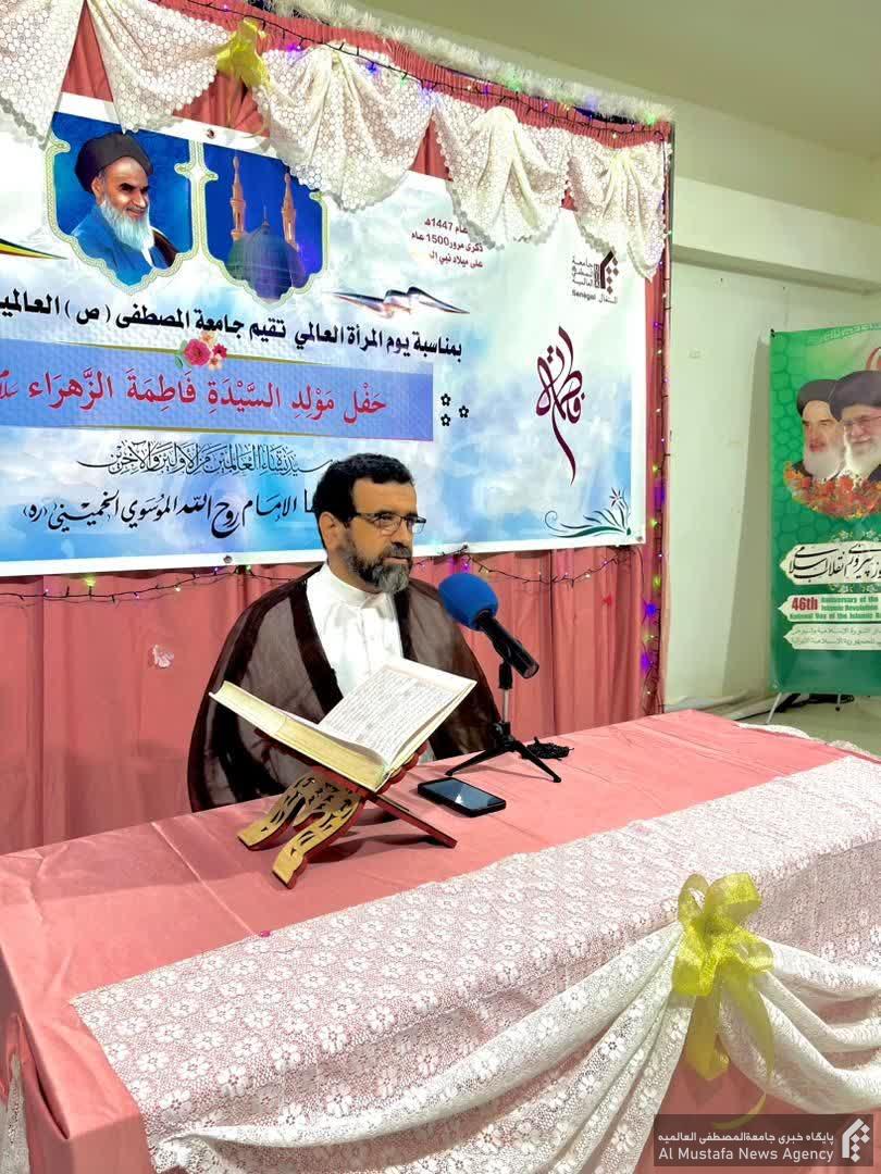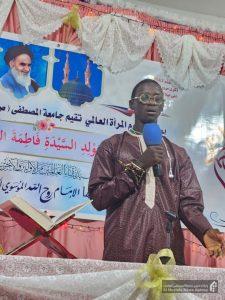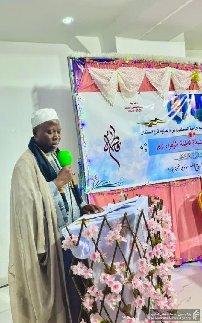 در این آیین که با تلاوت قرآن ار سوی “عبدالرحمن کیده” از طلاب جدیدالورود در سال تحصیلی ۲۰۲۵ – ۲۰۲۶ آغاز شد، خانم “میمونه فای” از استادان جامعة و مدیر جمعیت فاطمة الزهراء سنگال در سخنانی به بیان فضائل حضرت زهرا سلام الله علیها در قرآن و سنت پرداخت.