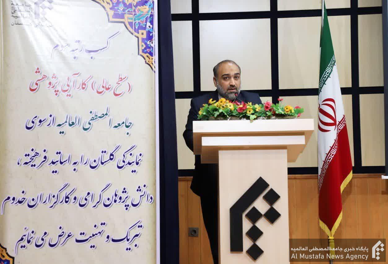 در ادامه این مراسم، حجتالاسلام والمسلمین دکتر نیکخو امیری، رئیس نمایندگی گلستان، با استناد به حدیث شریف «تألفوا و تعاطفوا»، بر ضرورت مهربانی، همدلی و تعامل سازنده در فضای علمی تأکید کرد و عنوان کرد: «هر انسانی در هر جایگاهی باید اهل محبت باشد و اگر فردی نتواند مهربانی کند، لازم است درمان آن را در درون خود جستوجو کند.»